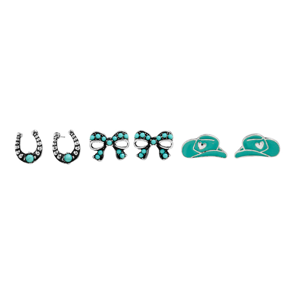3Pairs - Western Horseshoe Bow Cowboy Hat Stud Earring Set 3Pairs - Western Horseshoe Bow Cowboy Hat Stud Earring Set 3Pairs - Western Horseshoe Bow Cowboy Hat Stud Earring Set 3Pairs - Western Horseshoe Bow Cowboy Hat Stud Earring Set
