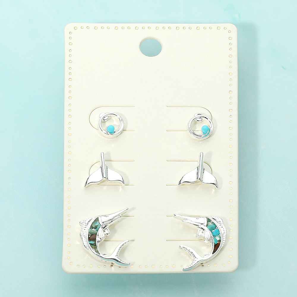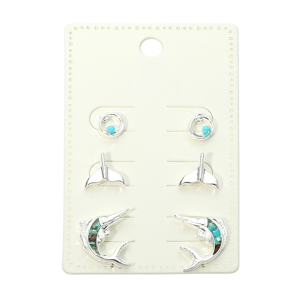 Details • Size : 0.3" - 0.75" L • Post Back • Three-pair sea life inspired stud earring set featuring swirling wave studs, whale tail silhouettes, and detailed fish motifs. Designed for easy mix-and-match styling, this versatile set fits coastal themes, vacation assortments, gift shops, and everyday accessory collections with a playful yet polished look. • Lead and Nickel Compliant