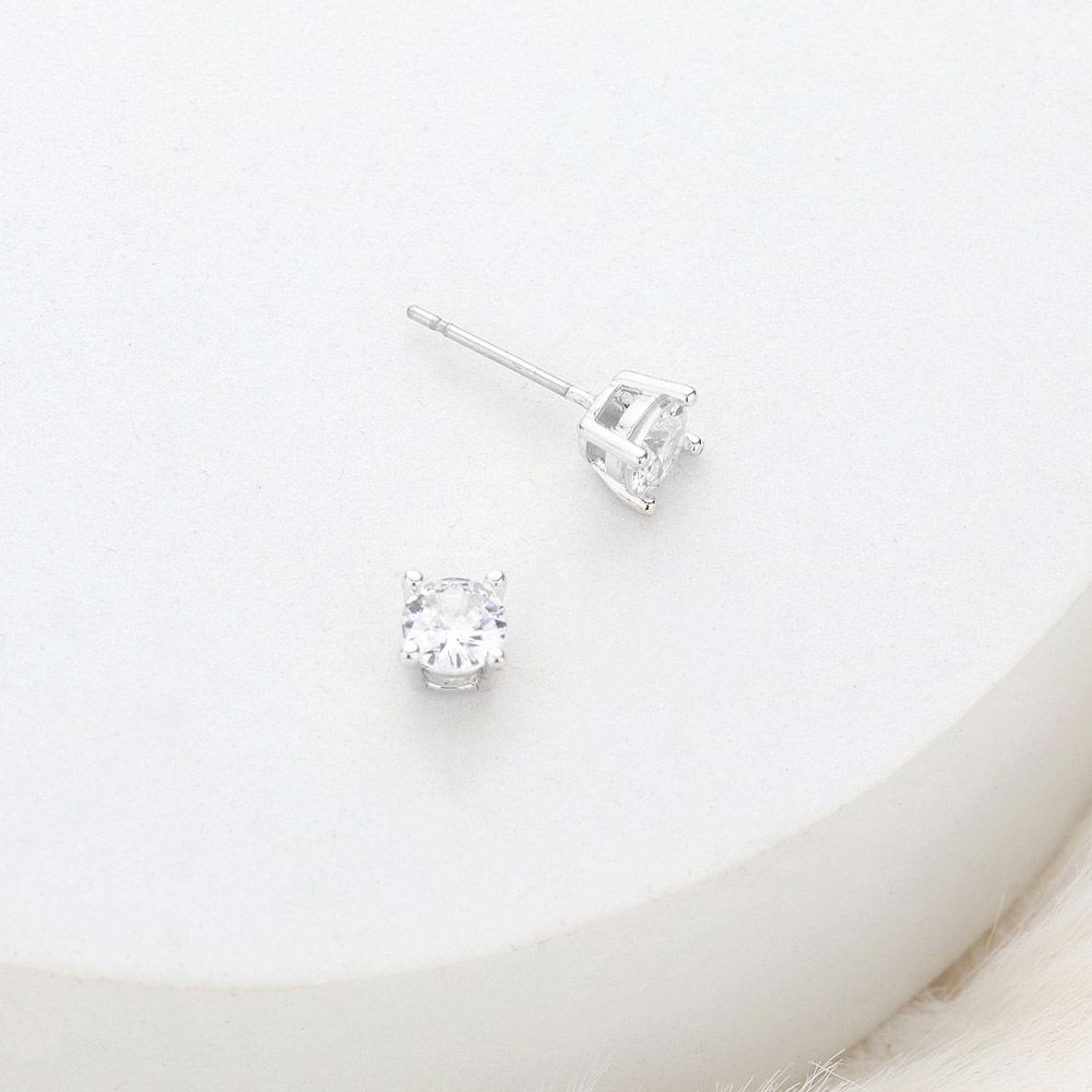 5mm Round Cut Crystal Cubic Zirconia CZ Stud Earrings with Clear Box