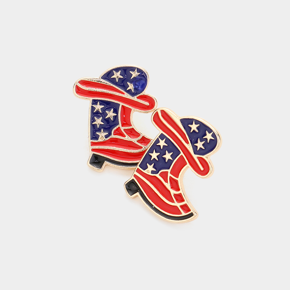 American USA Flag Enamel Cowboy Boots Stud Earrings
