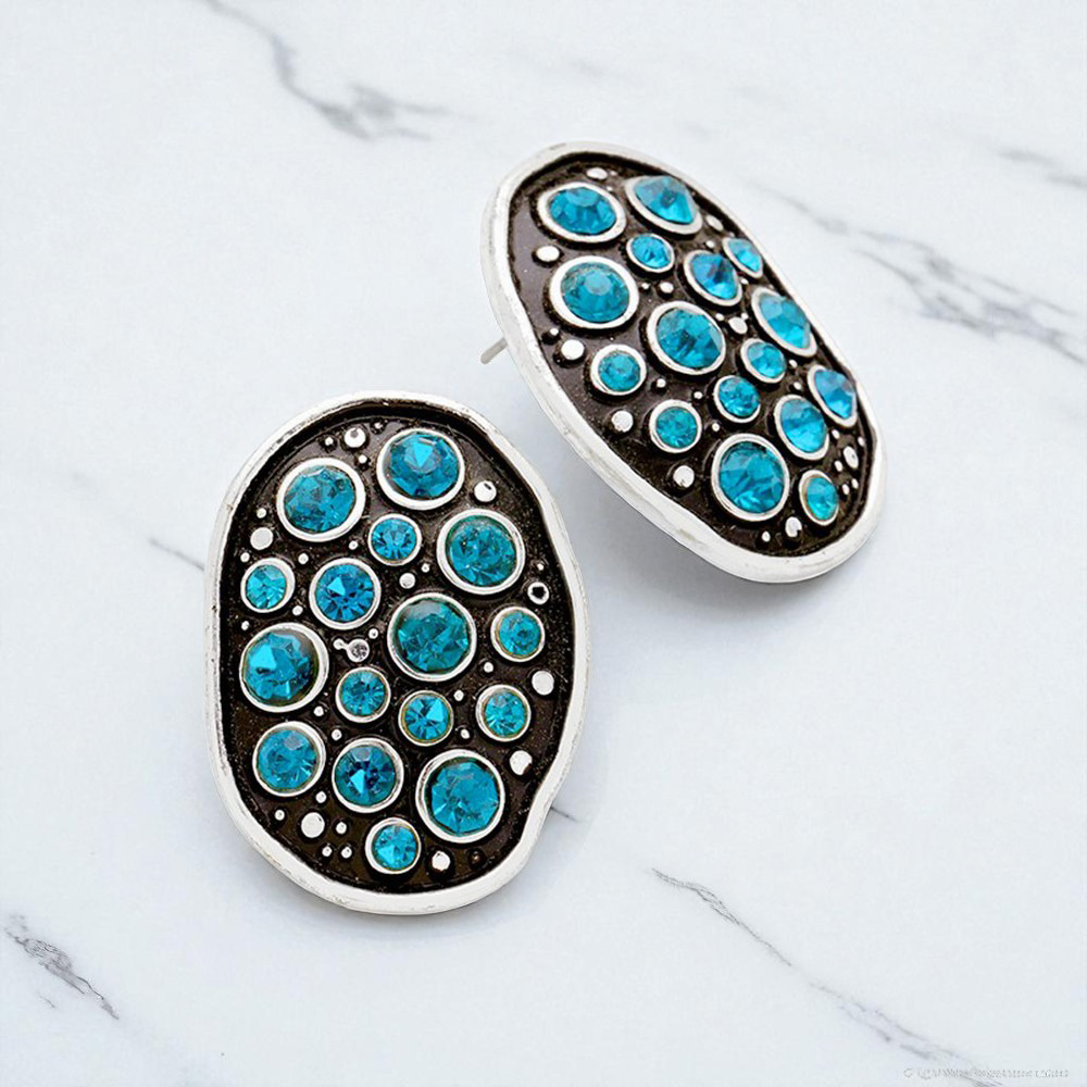 Oval Stone Accented Rhinestone Trimmed Necklace