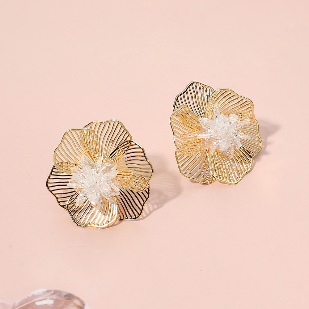 Crystal Centered Elegant Cutout Flower Stud Earrings Crystal Centered Elegant Cutout Flower Stud Earrings