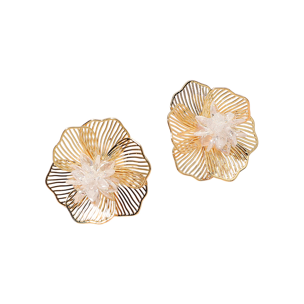 Crystal Centered Elegant Cutout Flower Stud Earrings