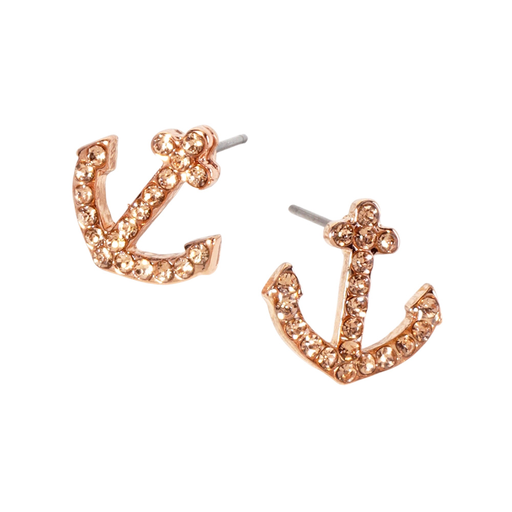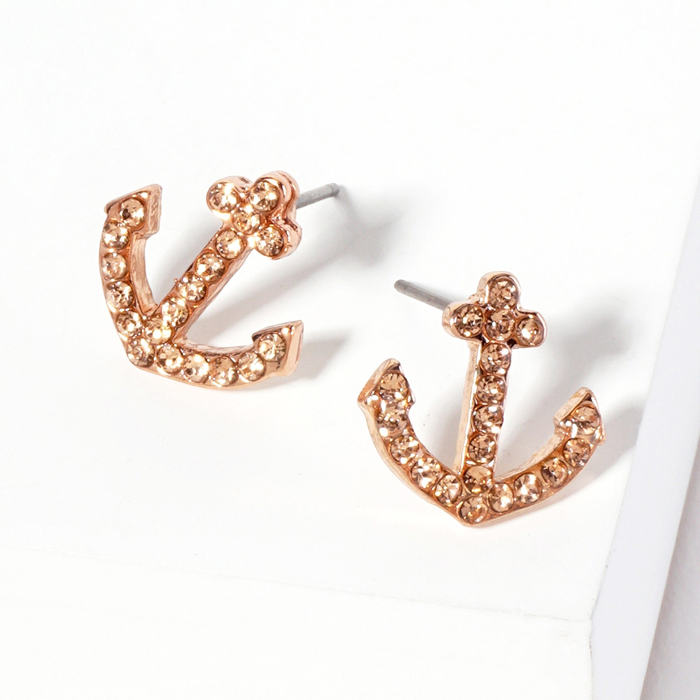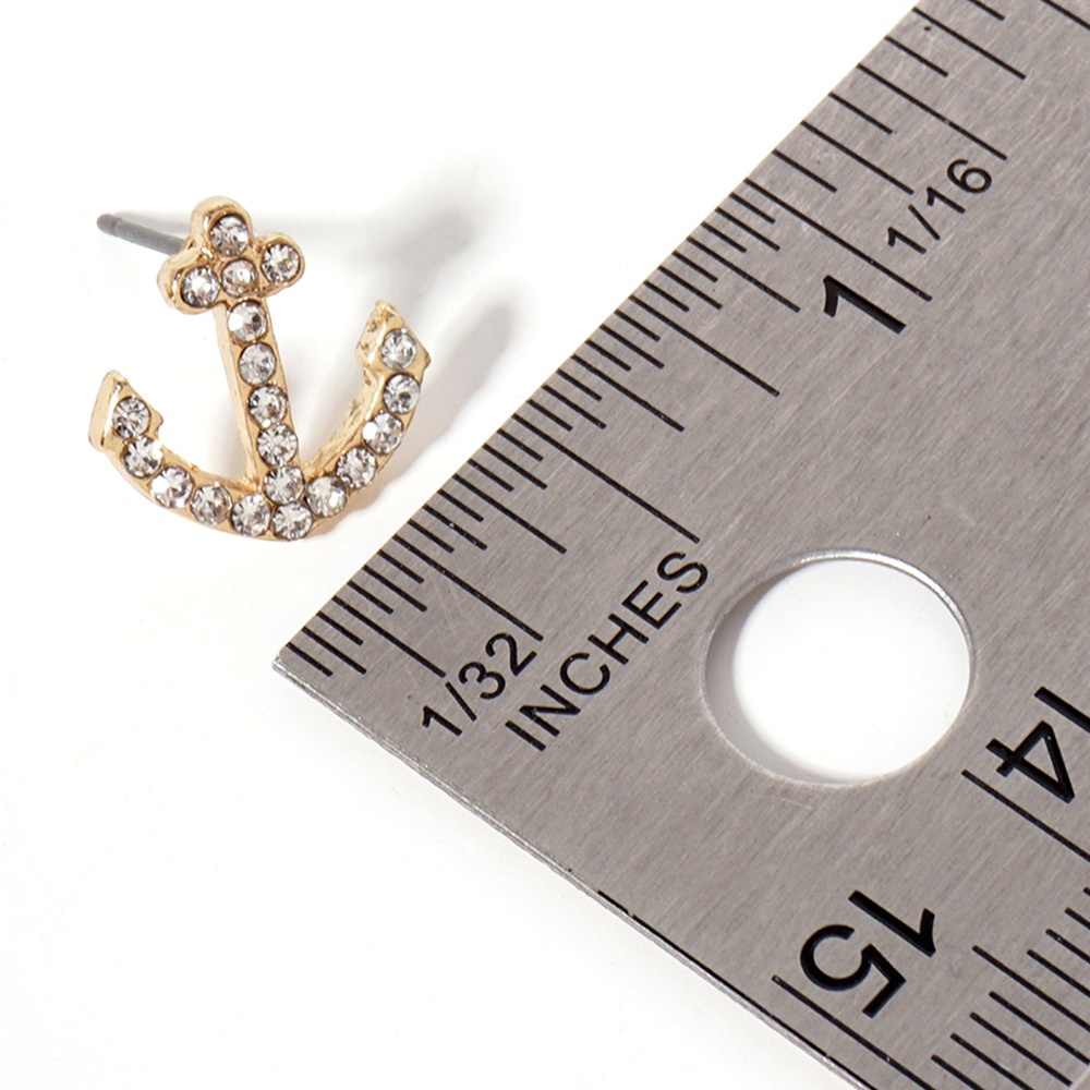 Crystal Rhinestone Paved Anchor Stud Earrings