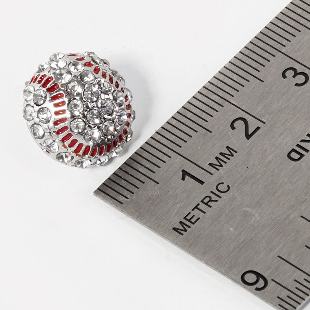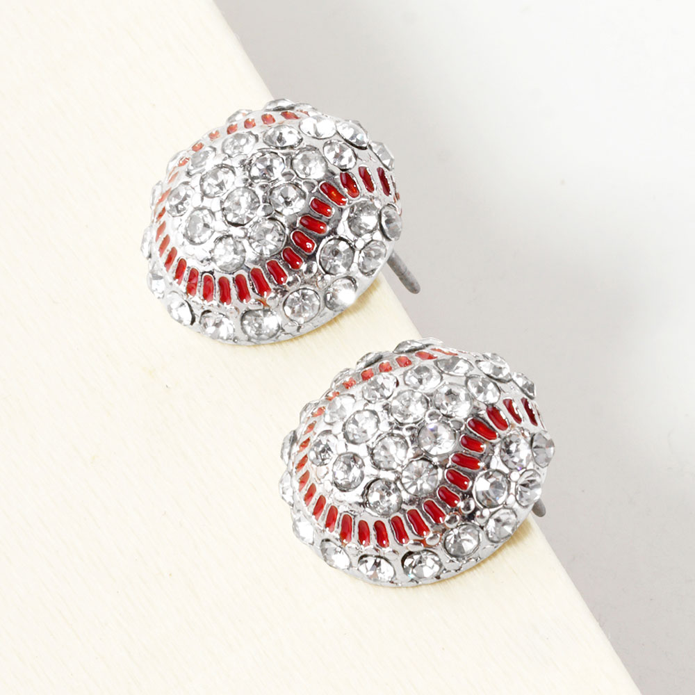 Details • Size : 0.6" X 0.6" • Post Back • Baseball-themed stud earrings adorned with shimmering rhinestones and sporty detailing. A fun accessory for fans and game day outfits. Lightweight and comfortable for all-day wear. • Lead and Nickel Compliant