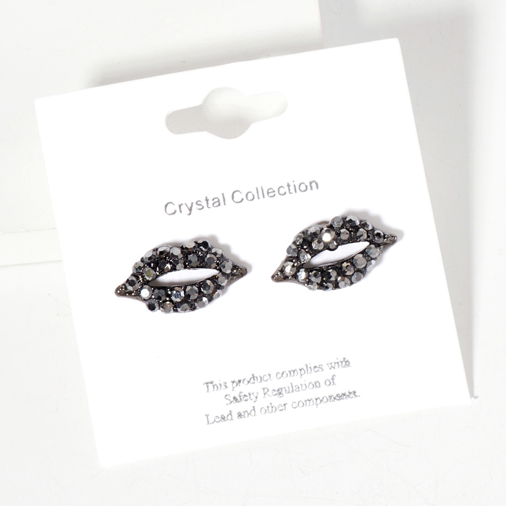 Crystal Rhinestone Paved Lips Stud Earrings
