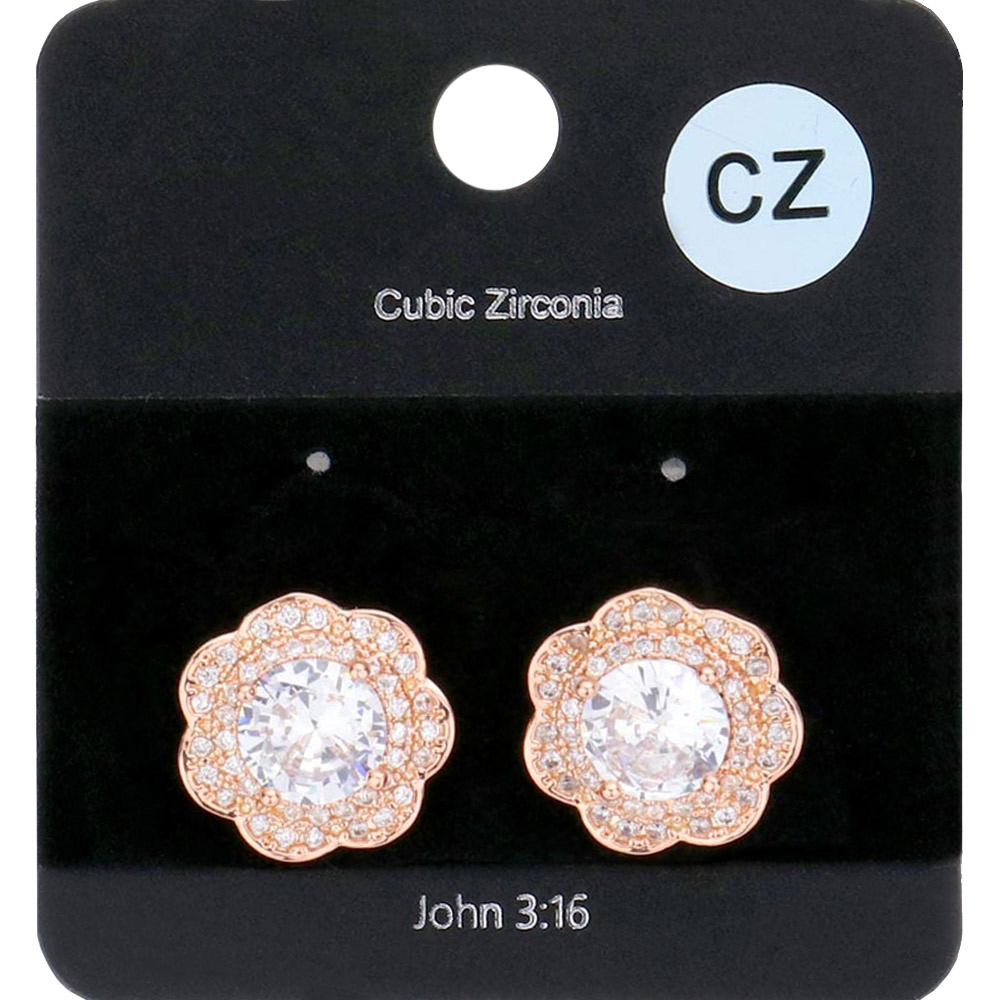 CZ Flower Stud Evening Earrings