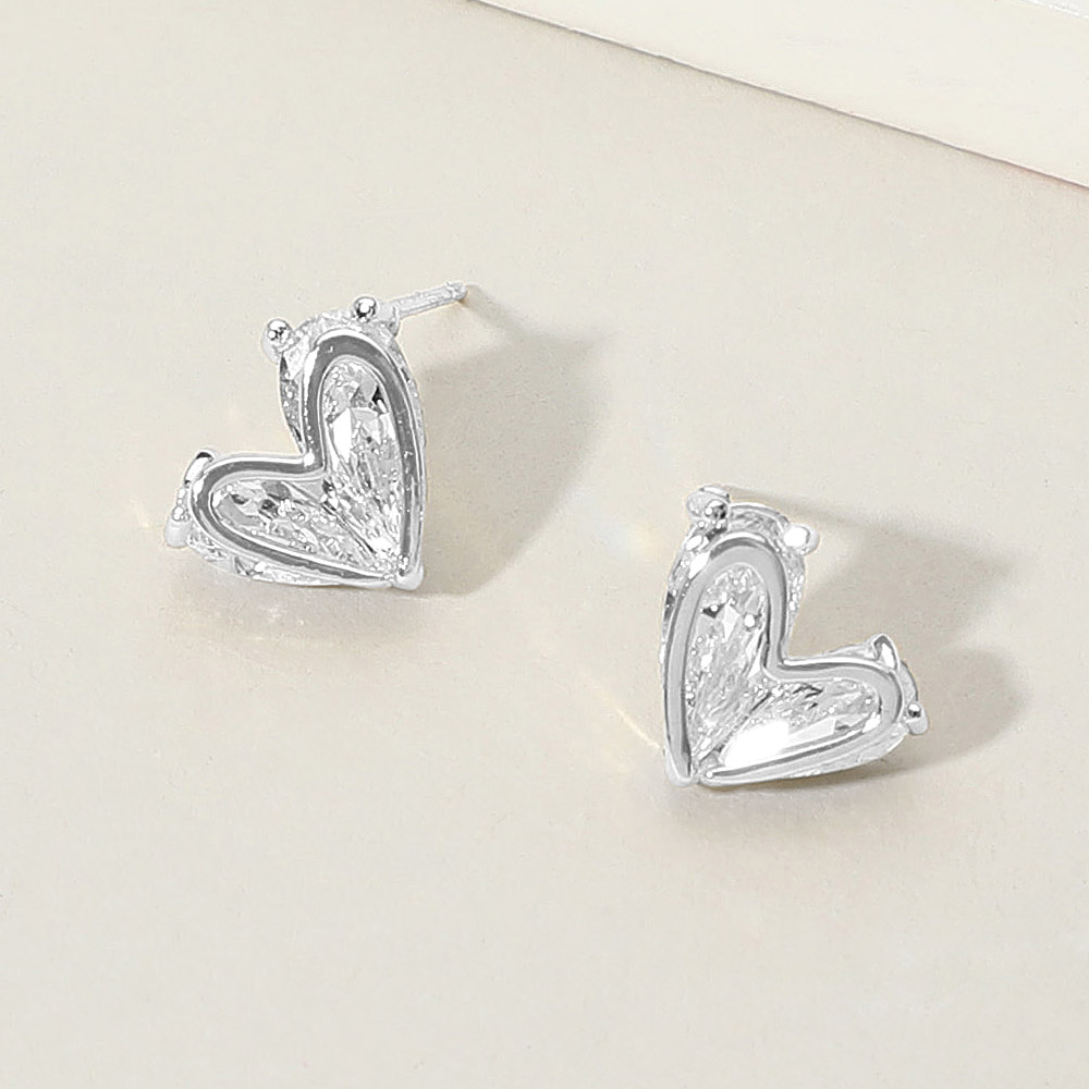 Details • Size : 0.5" X 0.4" • Post Back • Refined open-heart stud earrings accented with a sparkling crystal centerpiece for understated elegance and soft shine. Designed for easy everyday wear, they pair beautifully with casual looks or add a subtle romantic touch to evening outfits, making them perfect for minimalist styling or delicate layering. • Lead and Nickel Compliant • CZ Cubic Zirconia