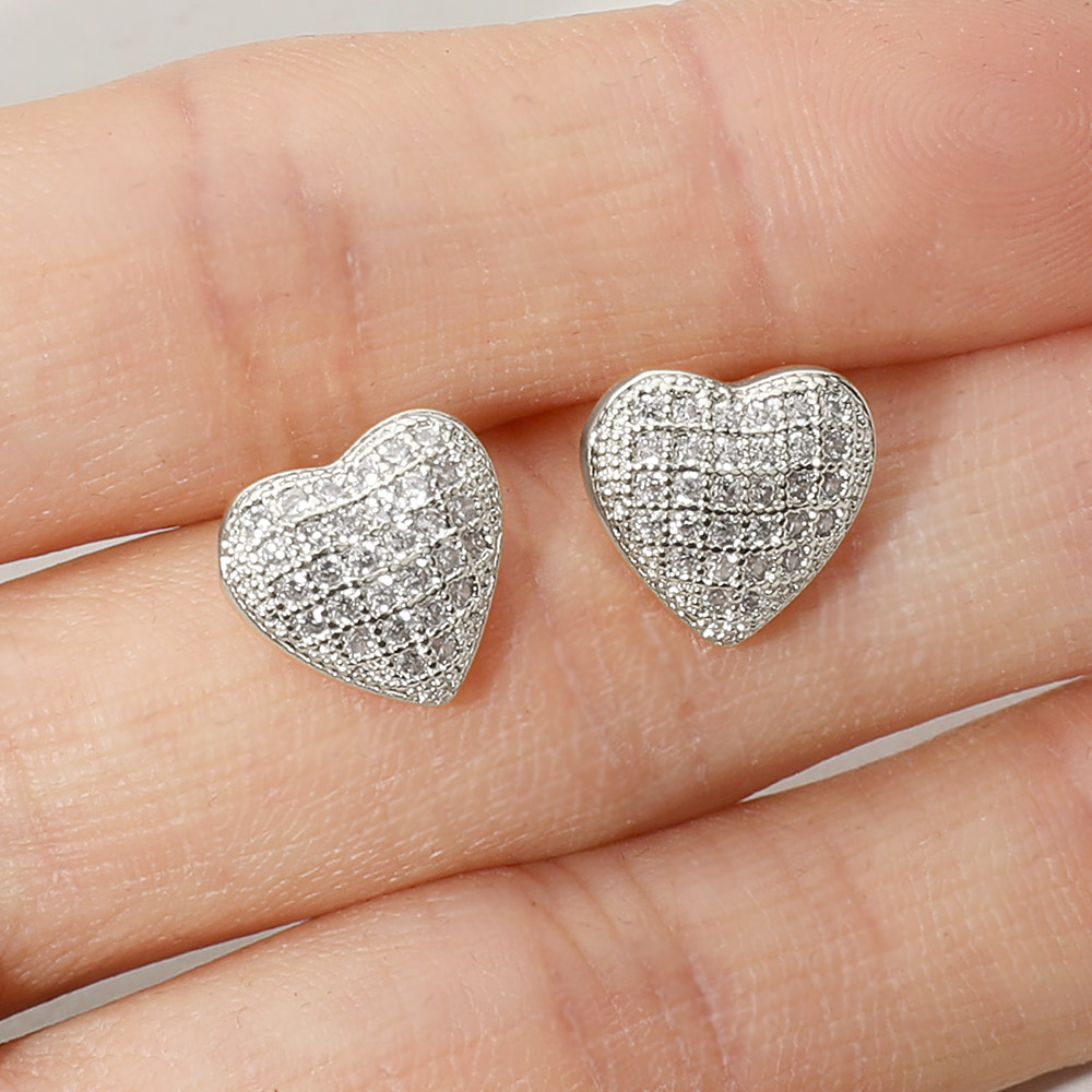 Gold Dipped CZ Stone Paved Rim Heart Stud Earrings