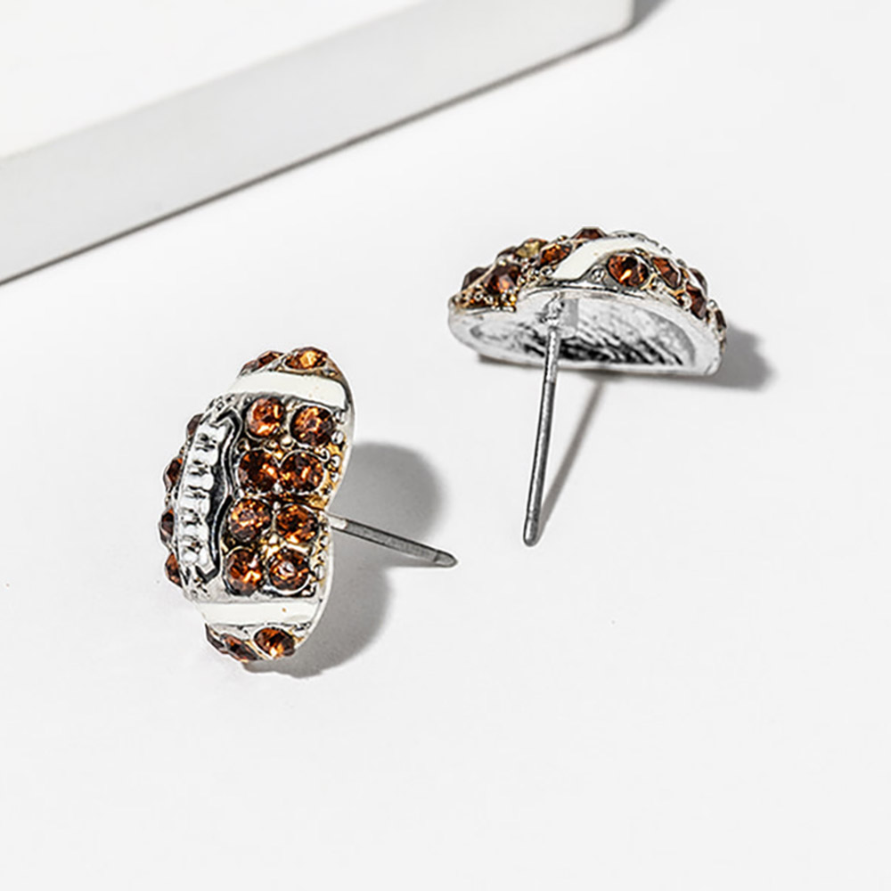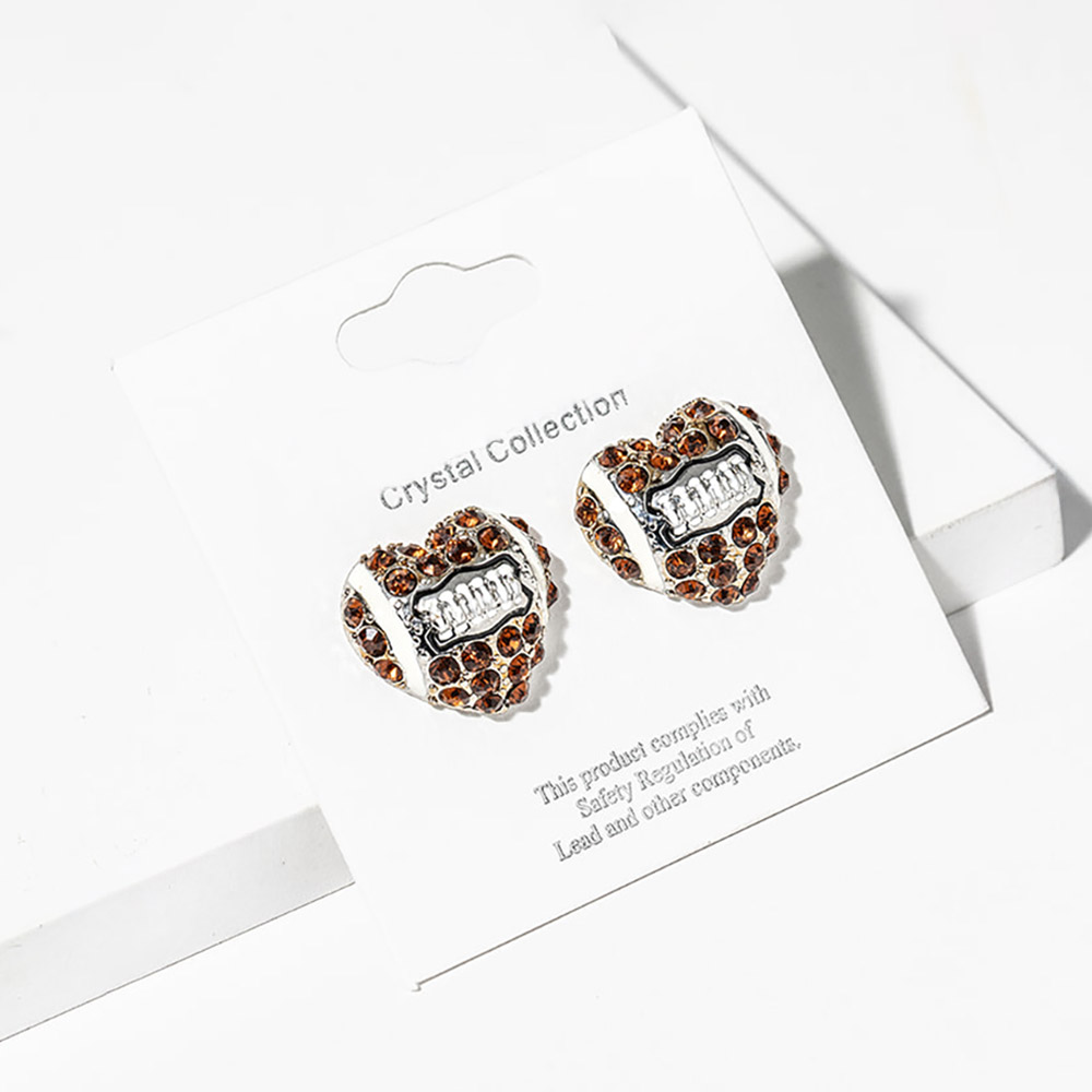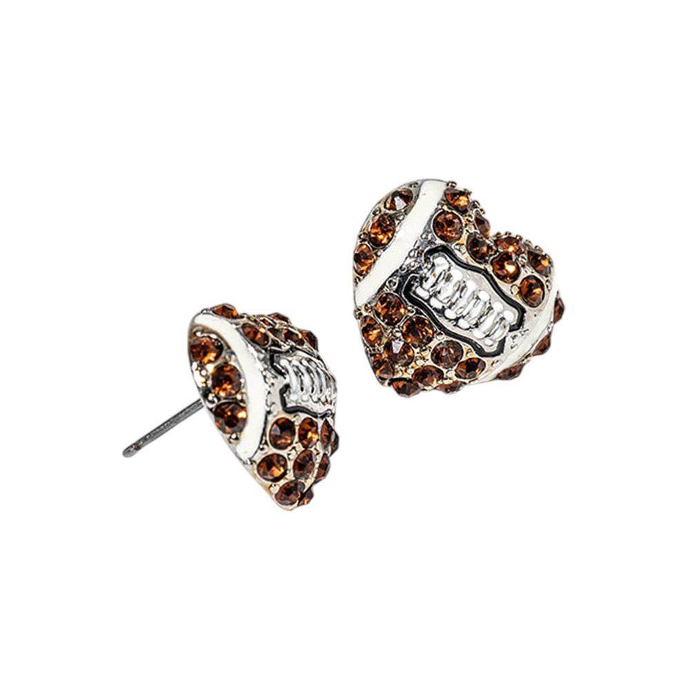 Football Crystal Pave Heart Stud Earrings
