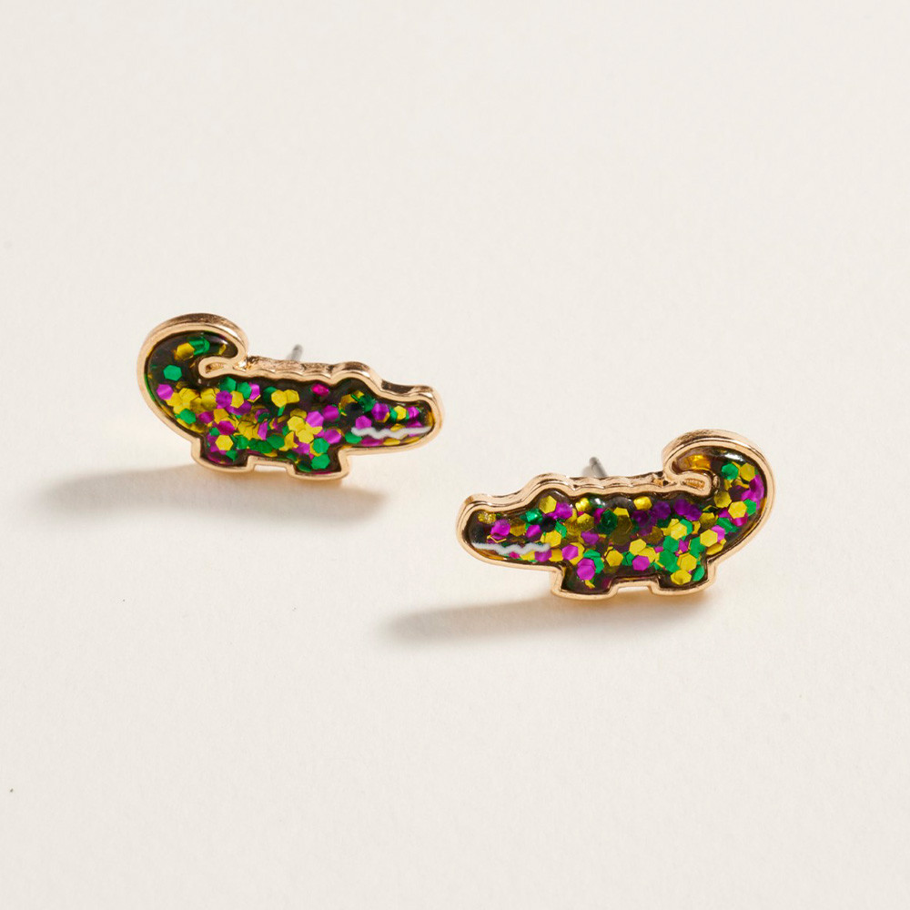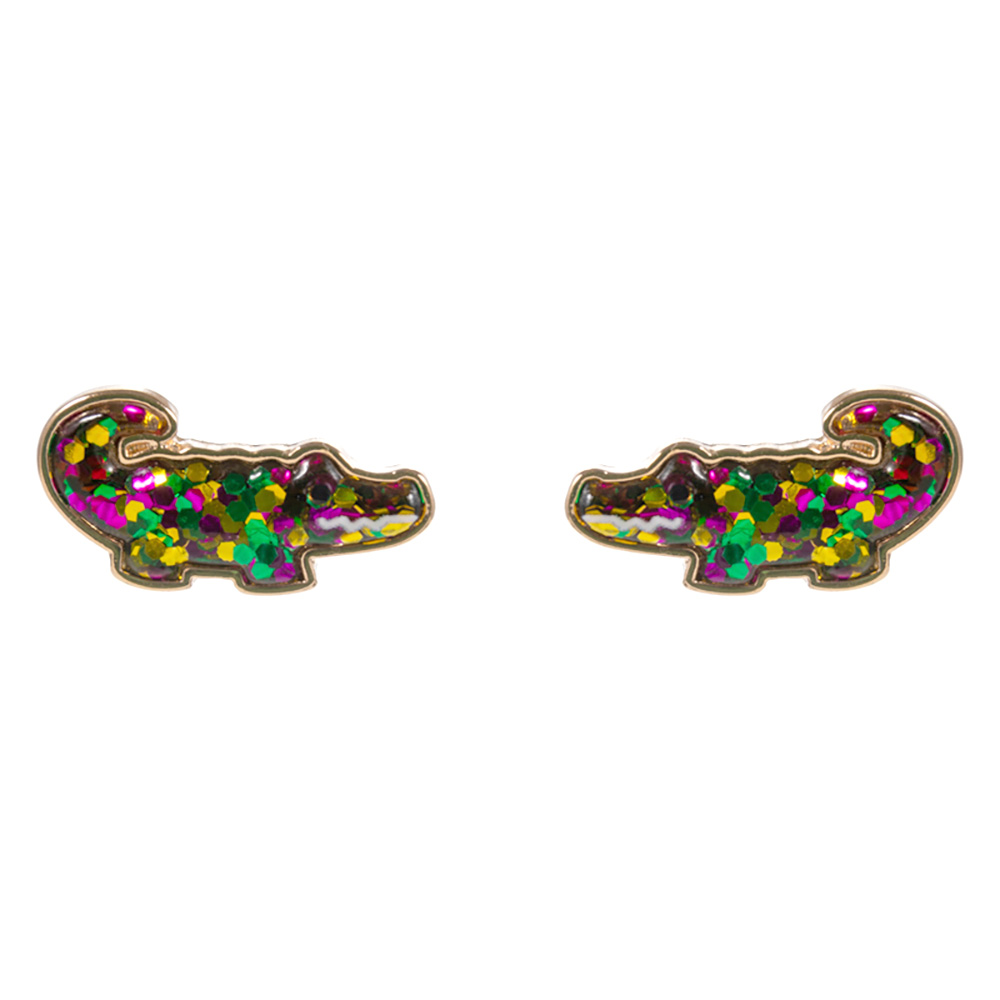 Details • Size : 0.8" X 0.4" • Titanium Post Back • Fun alligator stud earrings featuring a shimmering glitter finish for a playful, eye-catching look. Perfect for adding personality to casual outfits or themed events, these unique earrings bring charm and bold style, making them a standout accessory for any jewelry collection. • Hypoallergenic • Lead and Nickel Compliant