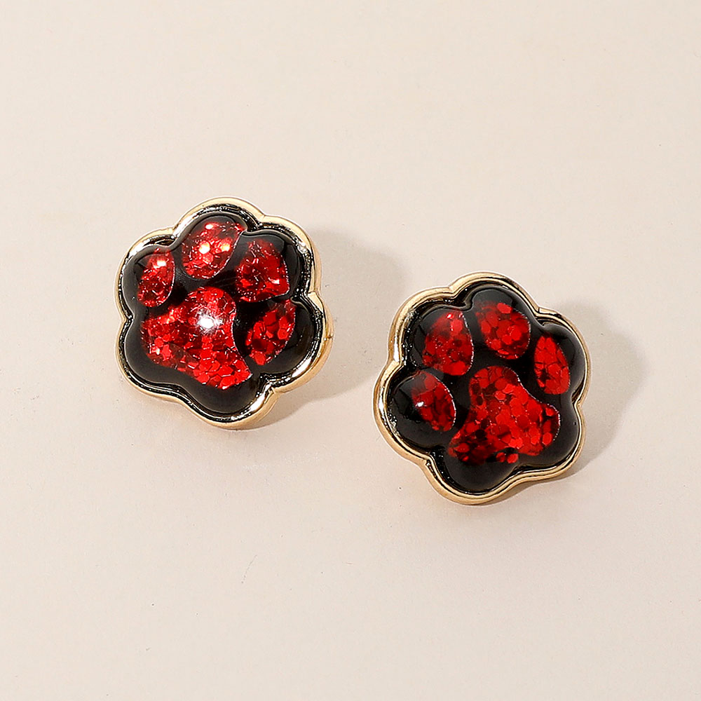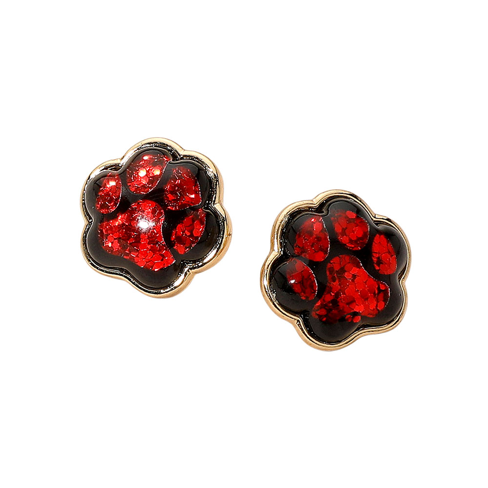Details • Size : 0.9" X 0.9" • Post Back • Stud earrings designed with glitter-filled paw print accents in multiple color options. Fun and lightweight, these earrings are the perfect way to show team spirit, school pride, or playful style on game day and beyond. • Lead and Nickel Compliant