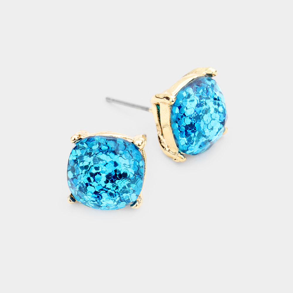 -S- Initial Monogram Turquoise Charm Faceted Beaded Stretch Bracelet