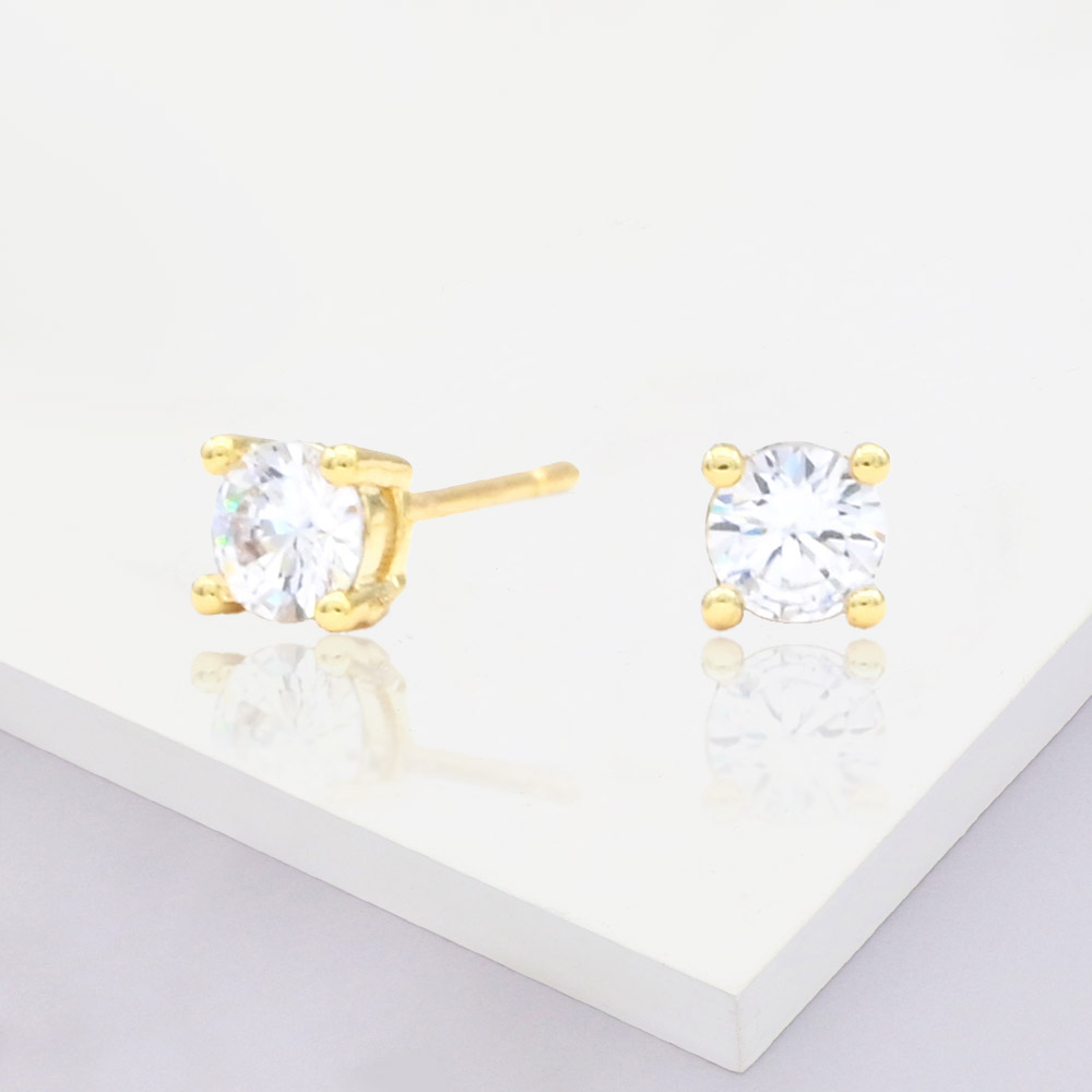 Gold Dipped 4mm Round CZ Stone Stud Earrings