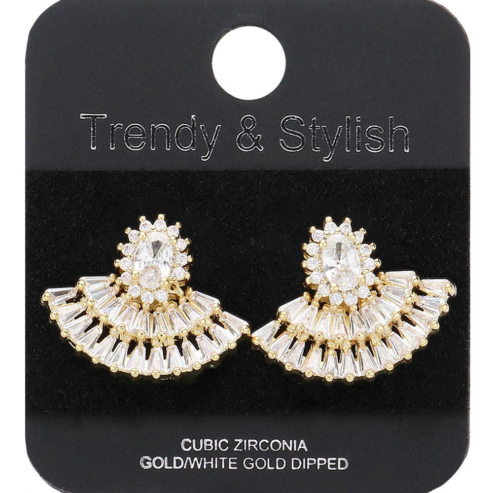 Gold Dipped CZ Stone Embellished Stud Earrings