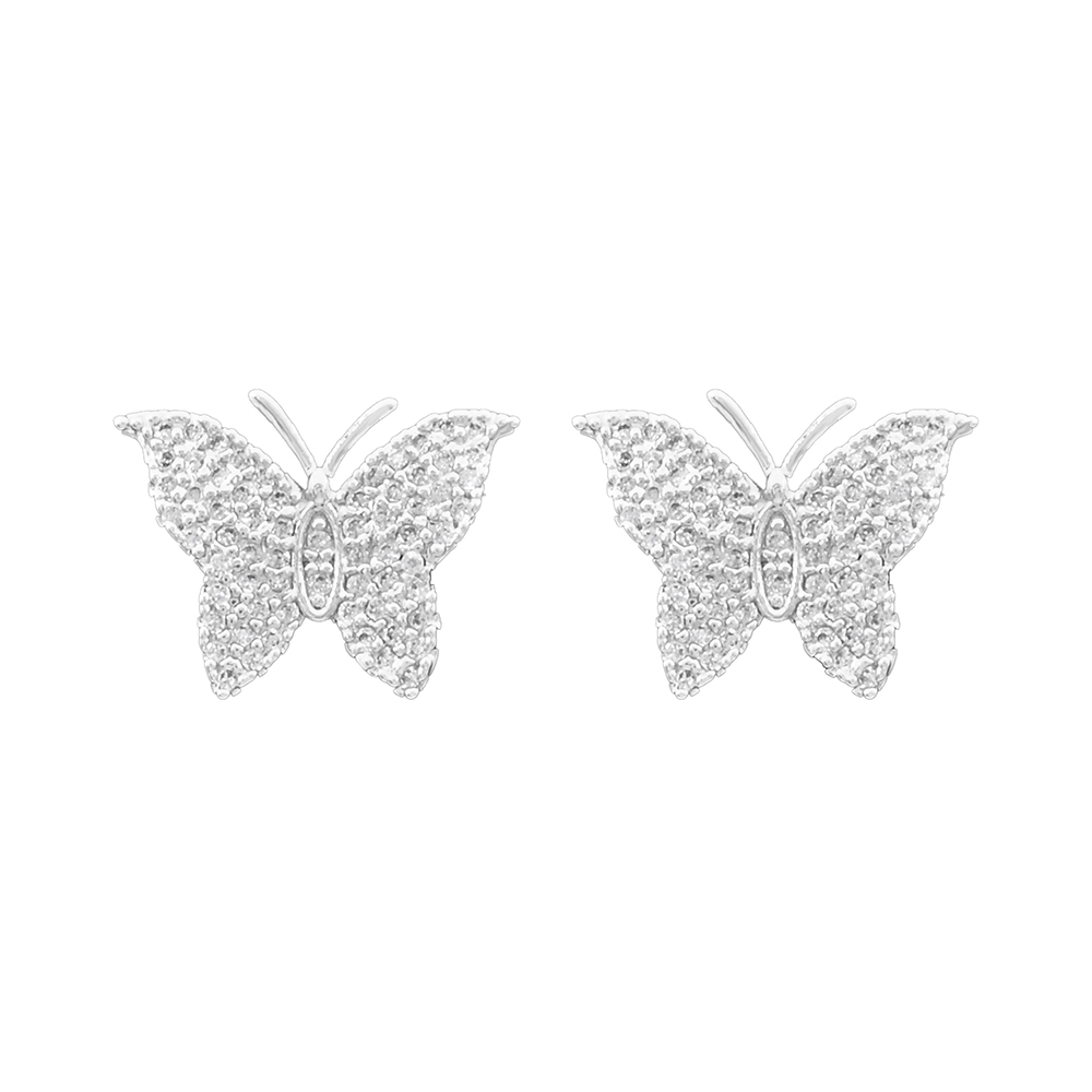 Gold Dipped CZ Stone Paved Butterfly Stud Earrings