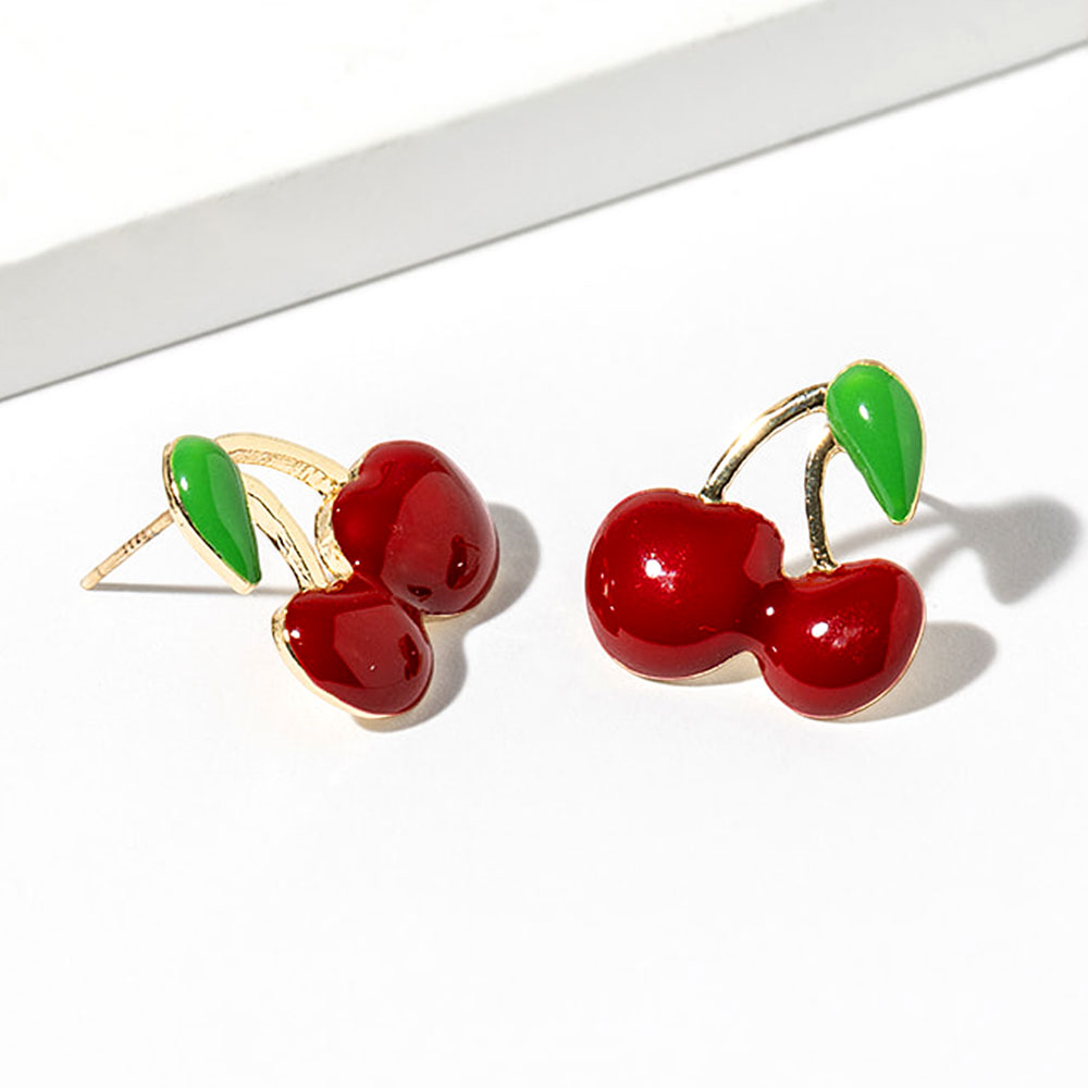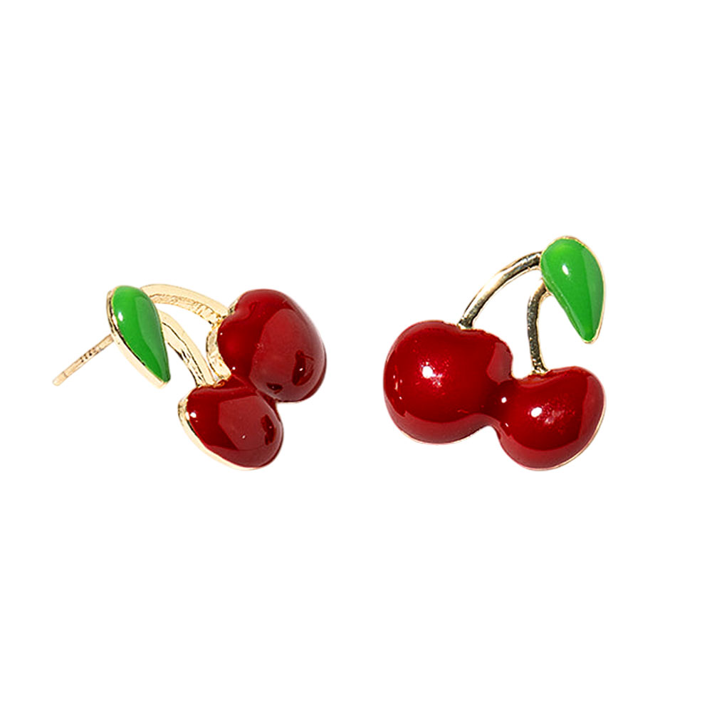 • Playful cherry stud earrings featuring a glossy fruit-inspired silhouette with a smooth leaf accent. These charming studs add a fun, youthful touch to everyday outfits while remaining easy to style for casual looks, seasonal collections, or novelty jewelry displays that need a lighthearted yet polished statement.