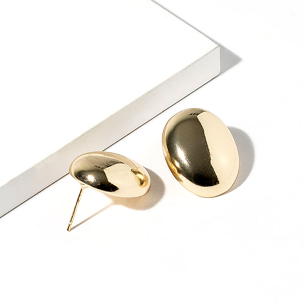• Minimal oval stud earrings designed with a sleek, polished surface and softly rounded shape. These timeless studs deliver a refined, modern look that pairs easily with casual or dress styles, offering everyday versatility and effortless elegance for a wide range of fashion collections.
