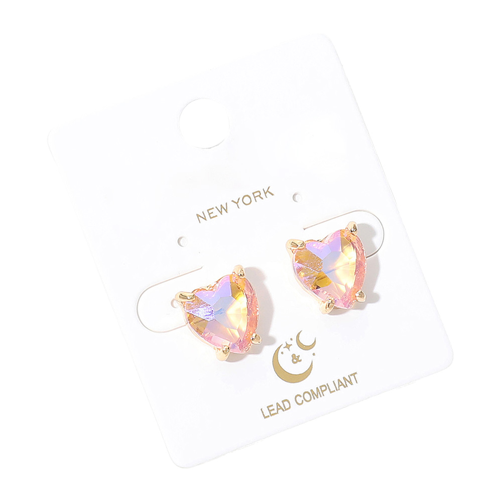 • These faceted heart stud earrings dazzle with radiant shine and a classic prong setting. A charming accessory that adds playful sophistication and timeless romance to your look, day or night.