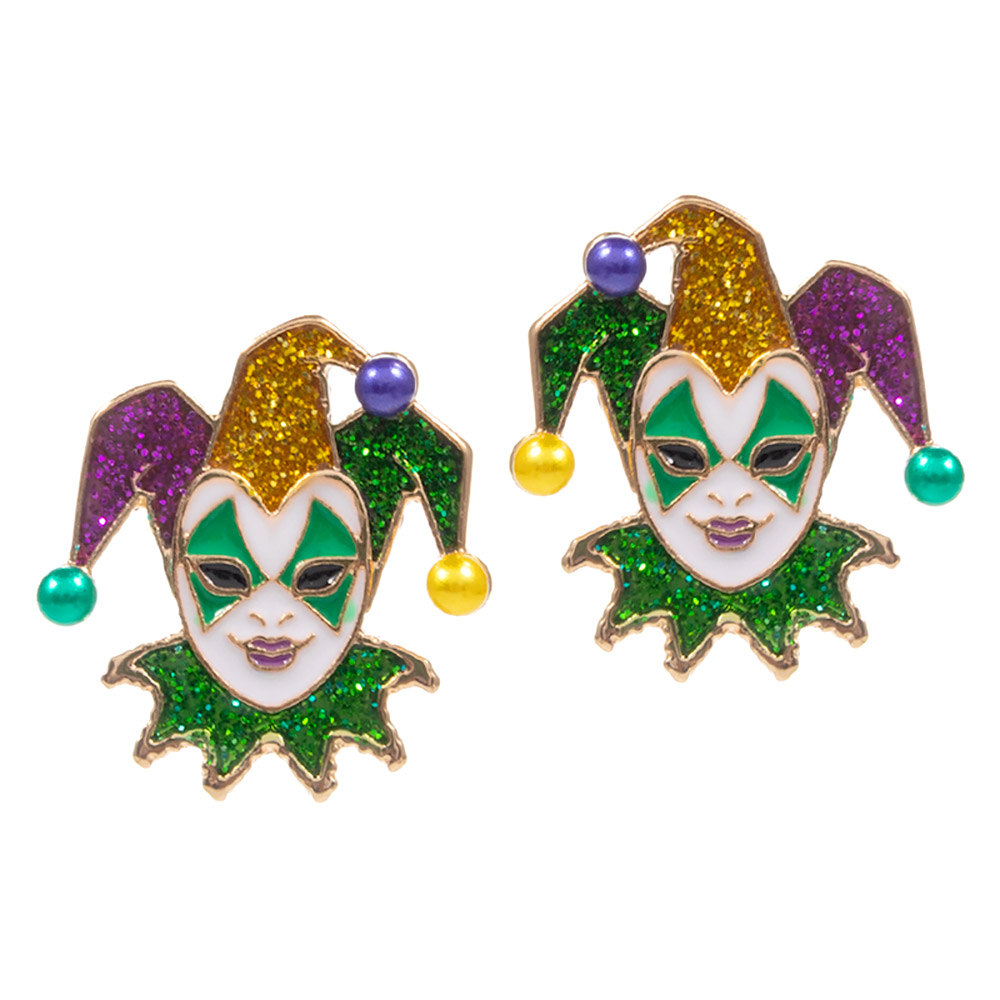 Mardi Gras Glittered Jester Pierrot Stud Earrings