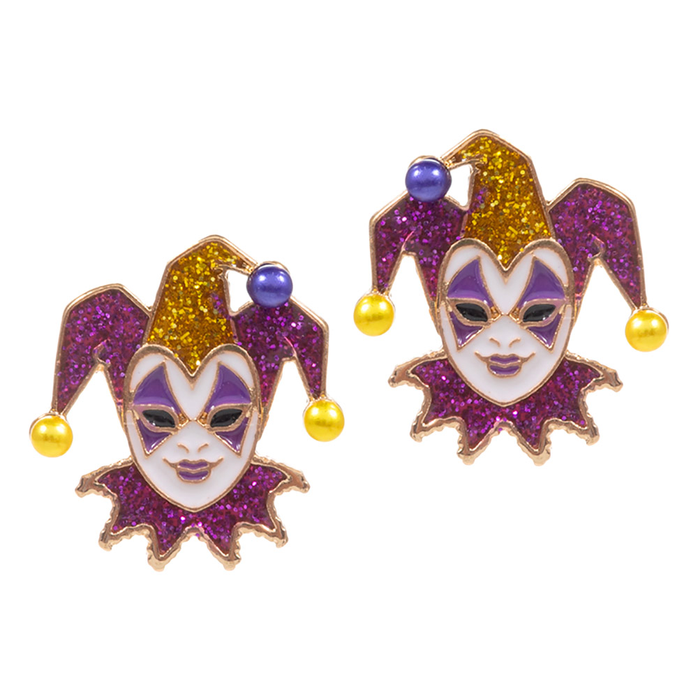 Mardi Gras Glittered Jester Pierrot Stud Earrings