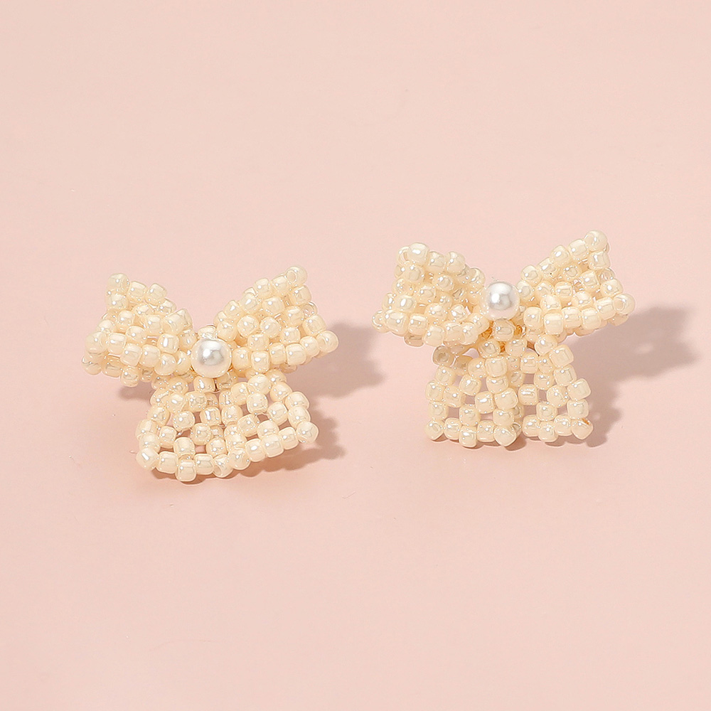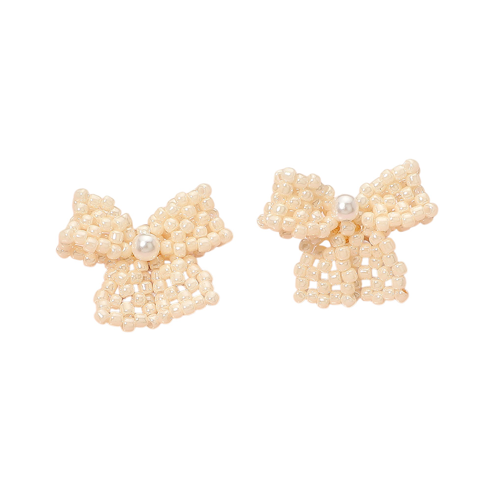 Details • Size : 0.9" X 0.75" • Post Back • Add a playful yet elegant touch to your style with these beaded bow stud earrings featuring intricate detailing and a delicate pearl accent. Perfect for everyday wear or special occasions, these earrings bring charm, femininity, and a sweet statement to any jewelry collection. • Brass • Lead and Nickel Compliant