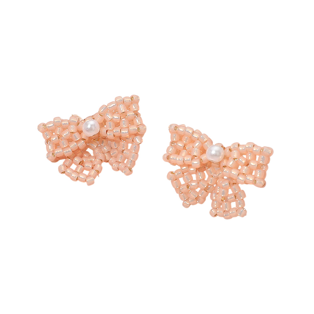 Details • Size : 0.9" X 0.75" • Post Back • Add a playful yet elegant touch to your style with these beaded bow stud earrings featuring intricate detailing and a delicate pearl accent. Perfect for everyday wear or special occasions, these earrings bring charm, femininity, and a sweet statement to any jewelry collection. • Brass • Lead and Nickel Compliant
