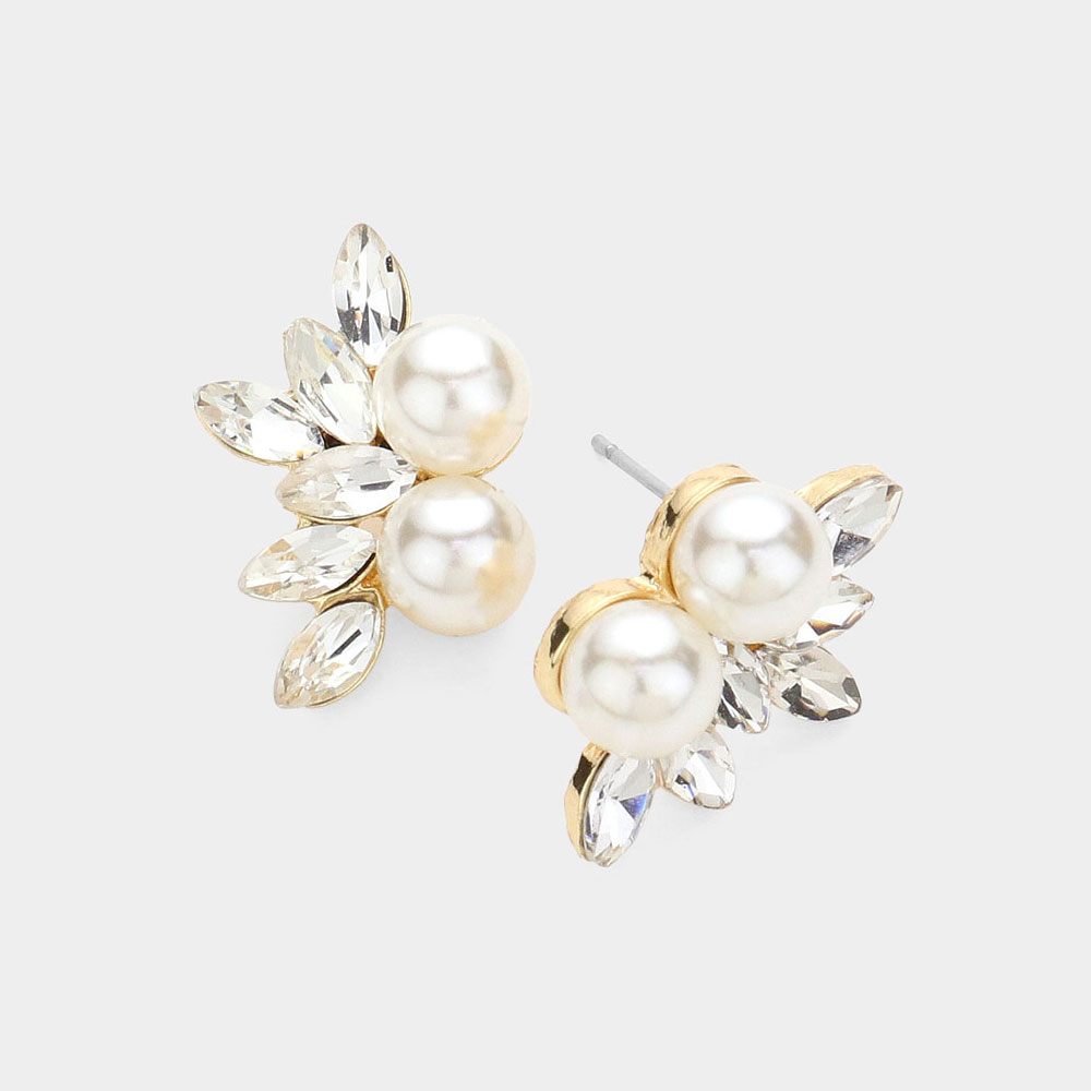 Pearl Pointed Marquise Stone Cluster Stud Evening Earrings