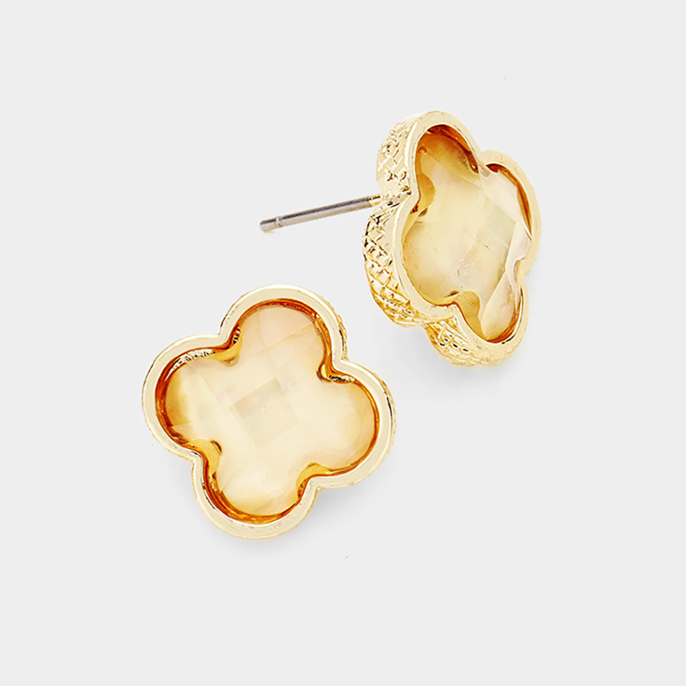 Quatrefoil Clover Stone Stud Earrings