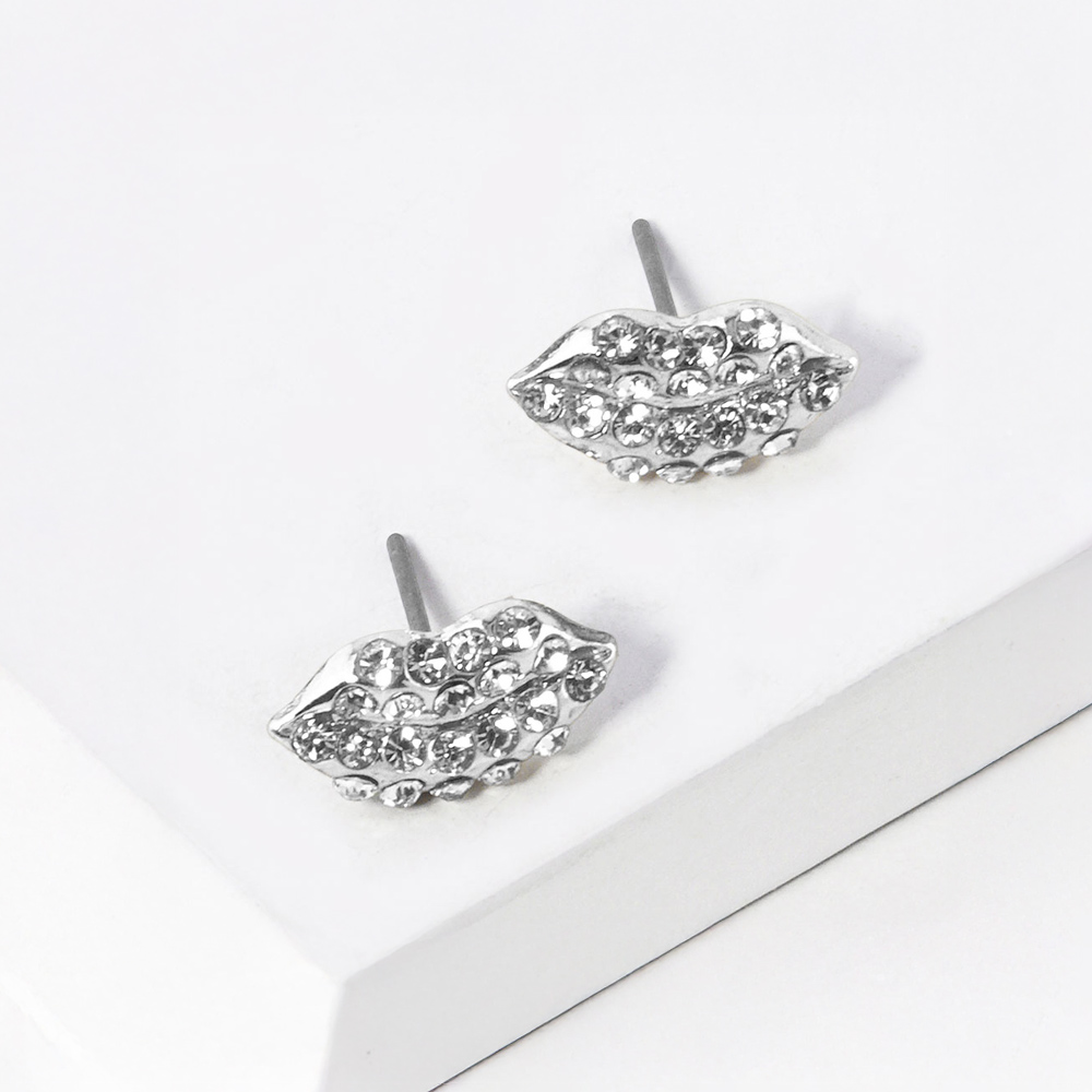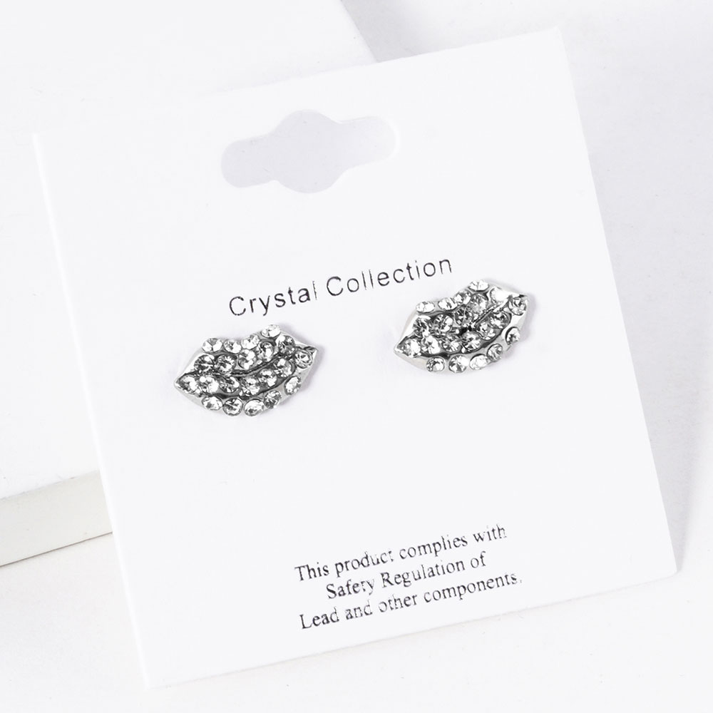 • Chic lip-shaped stud earrings accented with sparkling crystal pave detailing. A playful yet stylish accessory that adds personality to any look, perfect for everyday wear or gifting. Lightweight and easy to pair with casual or dressy outfits.