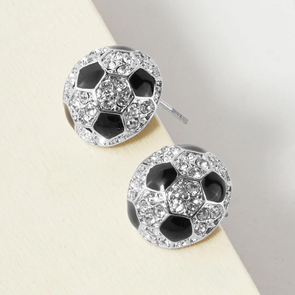 • Shine with sporty flair wearing these soccer ball stud earrings adorned with shimmering crystals. A playful yet chic accessory for soccer fans, players, or anyone who loves unique, athletic-inspired style.