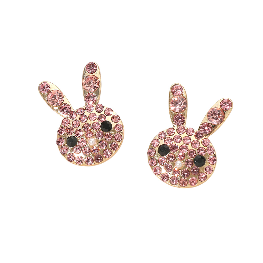 Rhinestone Paved Bunny Face Stud Earrings Rhinestone Paved Bunny Face Stud Earrings