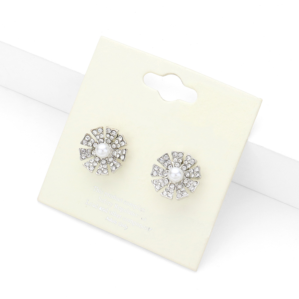 White Gold Dipped CZ Embellished Heart Stud Earrings