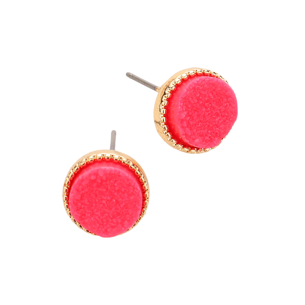 Rhinestone Trimmed Druzy Heart Stud Earrings