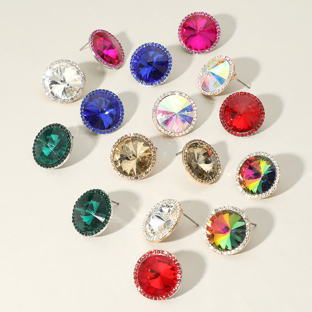 Round Glass Stone Evening Stud Earrings Round Glass Stone Evening Stud Earrings Round Glass Stone Evening Stud Earrings