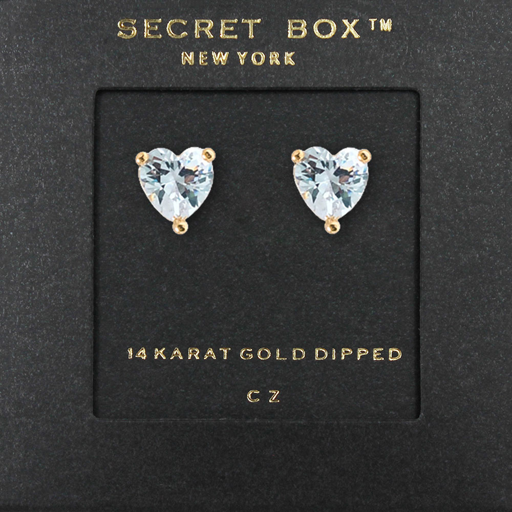 SECRET BOX_14K Gold Dipped CZ Heart Stone Stud Earrings