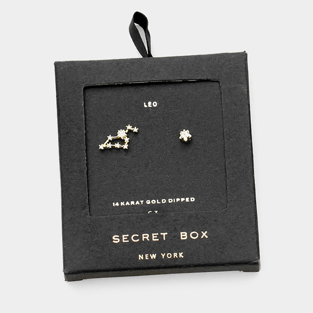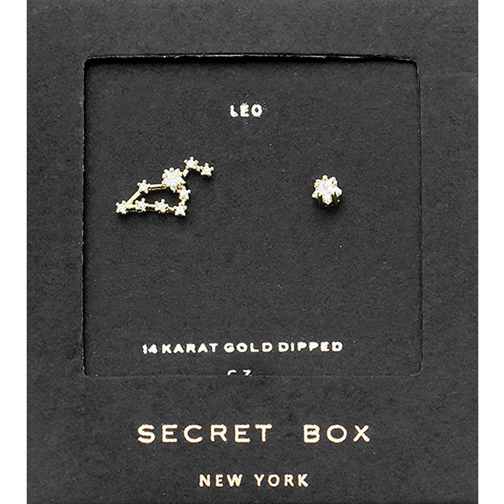 Secret Box_14K Gold Dipped CZ Stone Paved Leo Zodiac Sign Stud Earrings