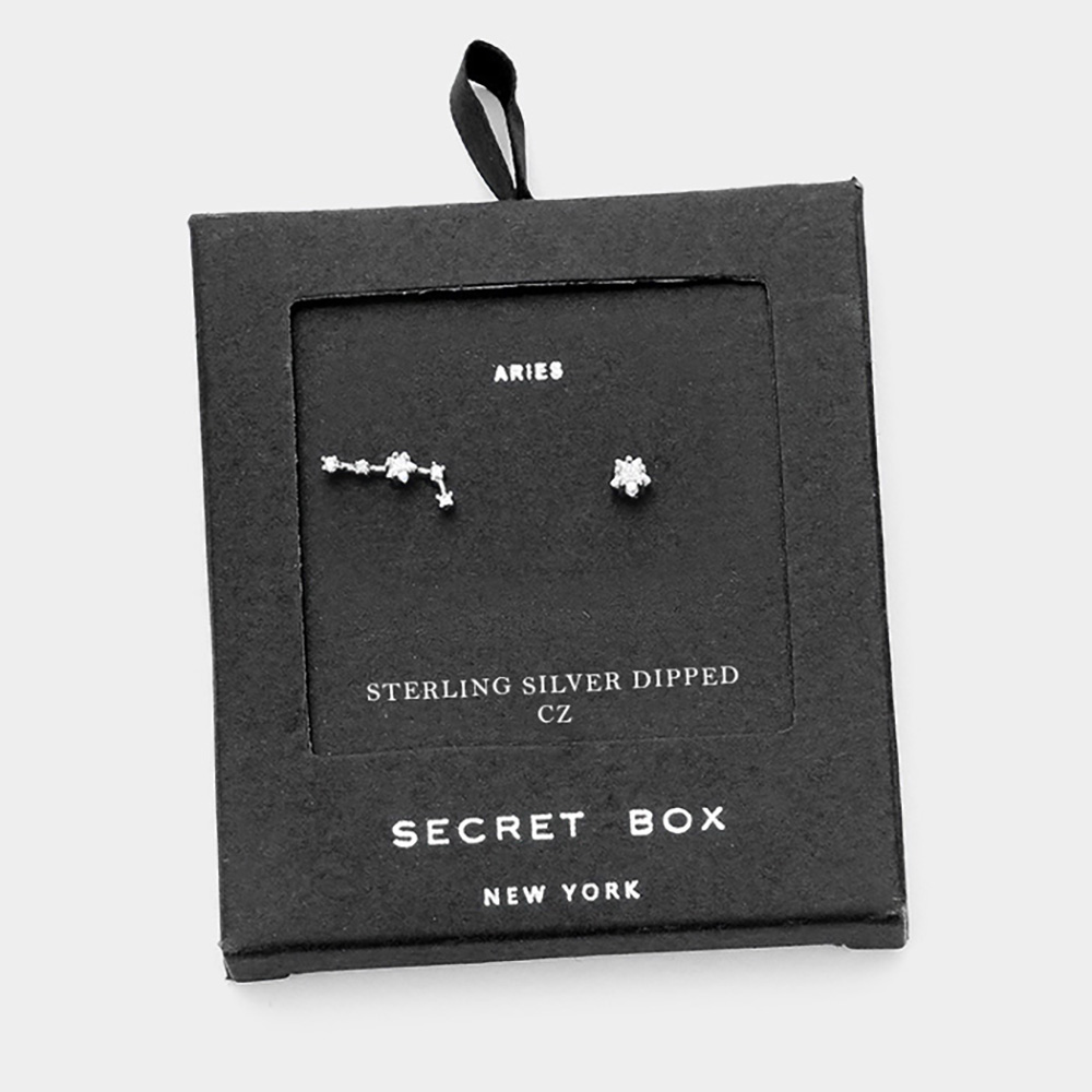 Secret Box_Sterling Silver Dipped CZ Stone Paved Aries Zodiac Sign Stud Earrings