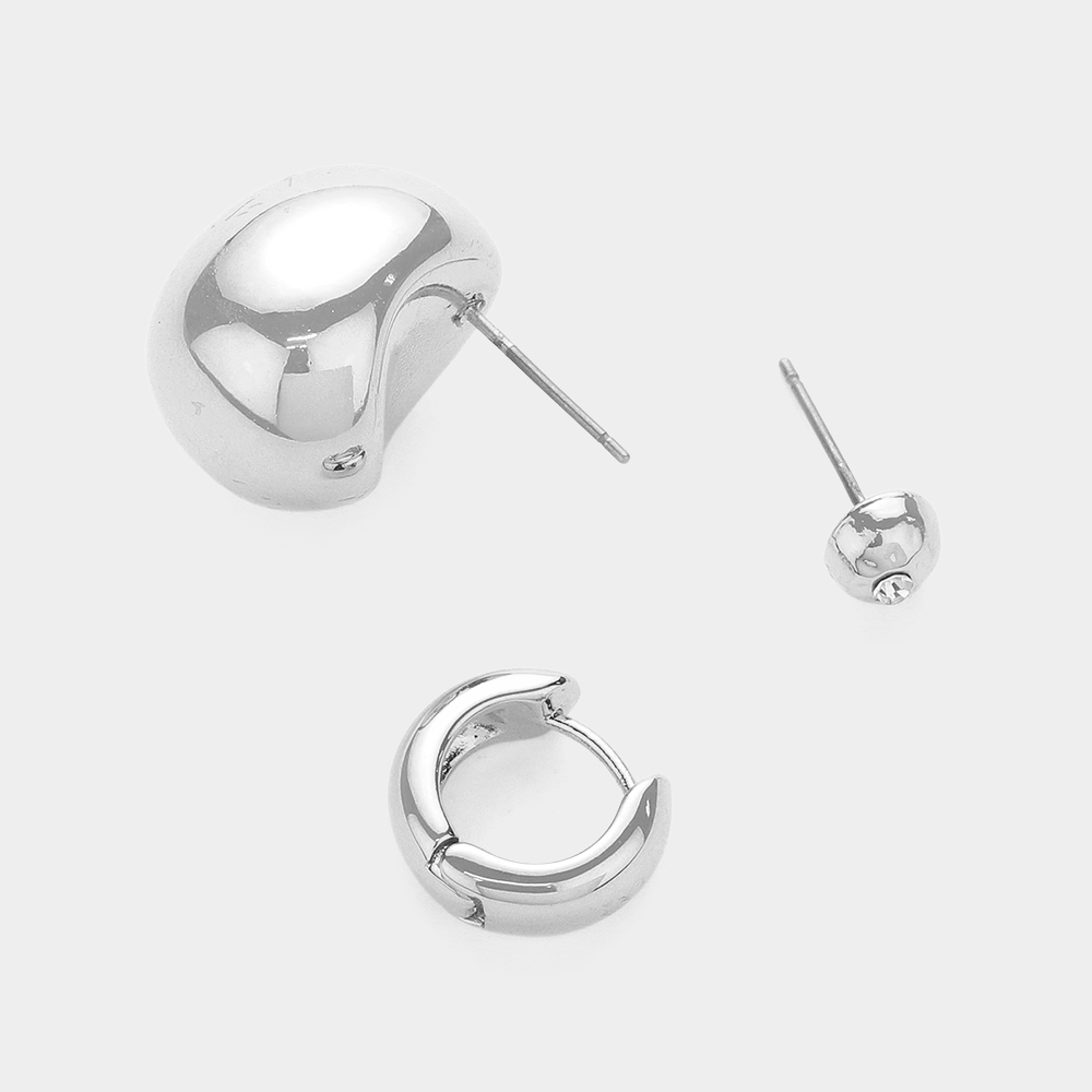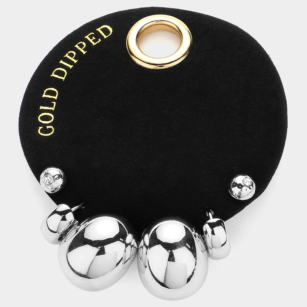Details • Size : 0.25" L - 0.75" L • Post Back • A stylish three-pair hoop earring set featuring sleek mini hoops and bold rounded drop accents for a polished contemporary vibe. Perfect for mixing, matching, and layering, this versatile set adds effortless shine to everyday outfits or dressy ensembles. • Gold Dipped