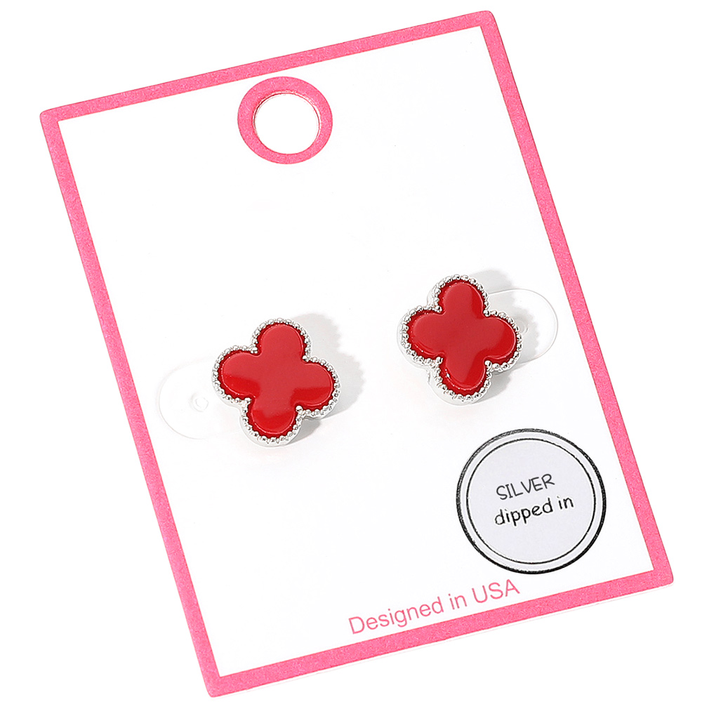 Silver Dipped Quatrefoil Stud Earrings Silver Dipped Quatrefoil Stud Earrings