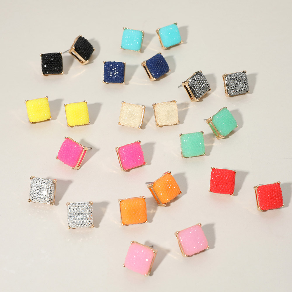 Resin Colorful Rhinestone Pave Hoop Earrings
