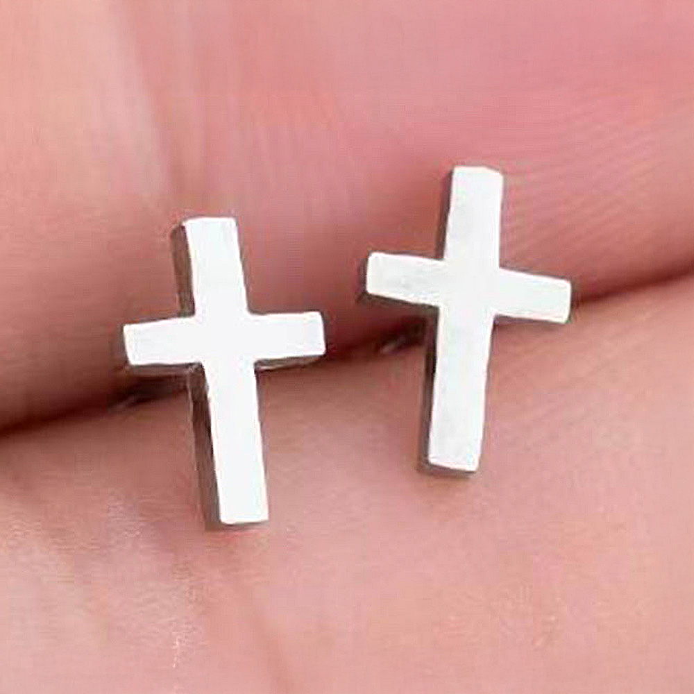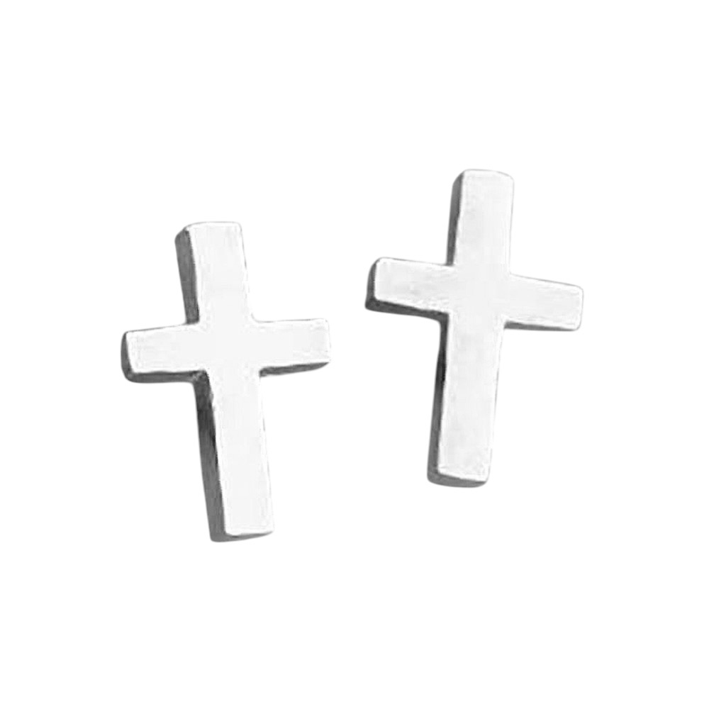 CZ Stone Paved Cross Dangle Huggie Earrings