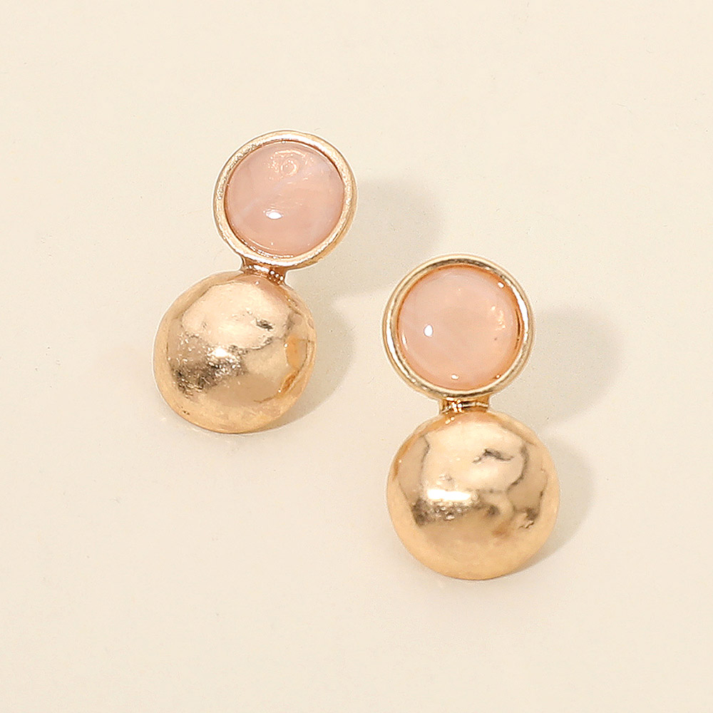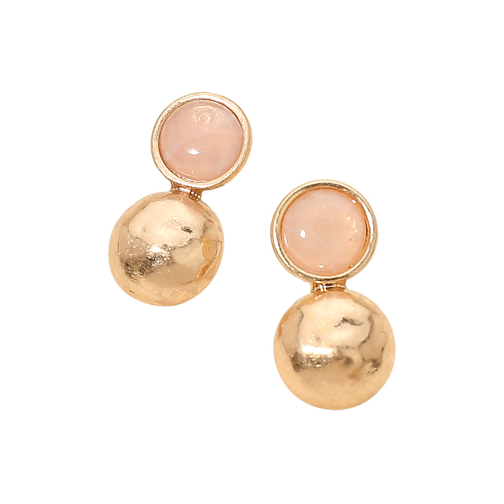 Details • Size : 0.5" X 0.8" • Post Back • These dual-dome stud earrings combine a smooth stone accent with a textured metallic sphere for a refined, modern look. Lightweight and versatile, they add subtle elegance to everyday outfits or dressy ensembles, making them an easy, stylish addition to any jewelry collection. • Lead and Nickel Compliant