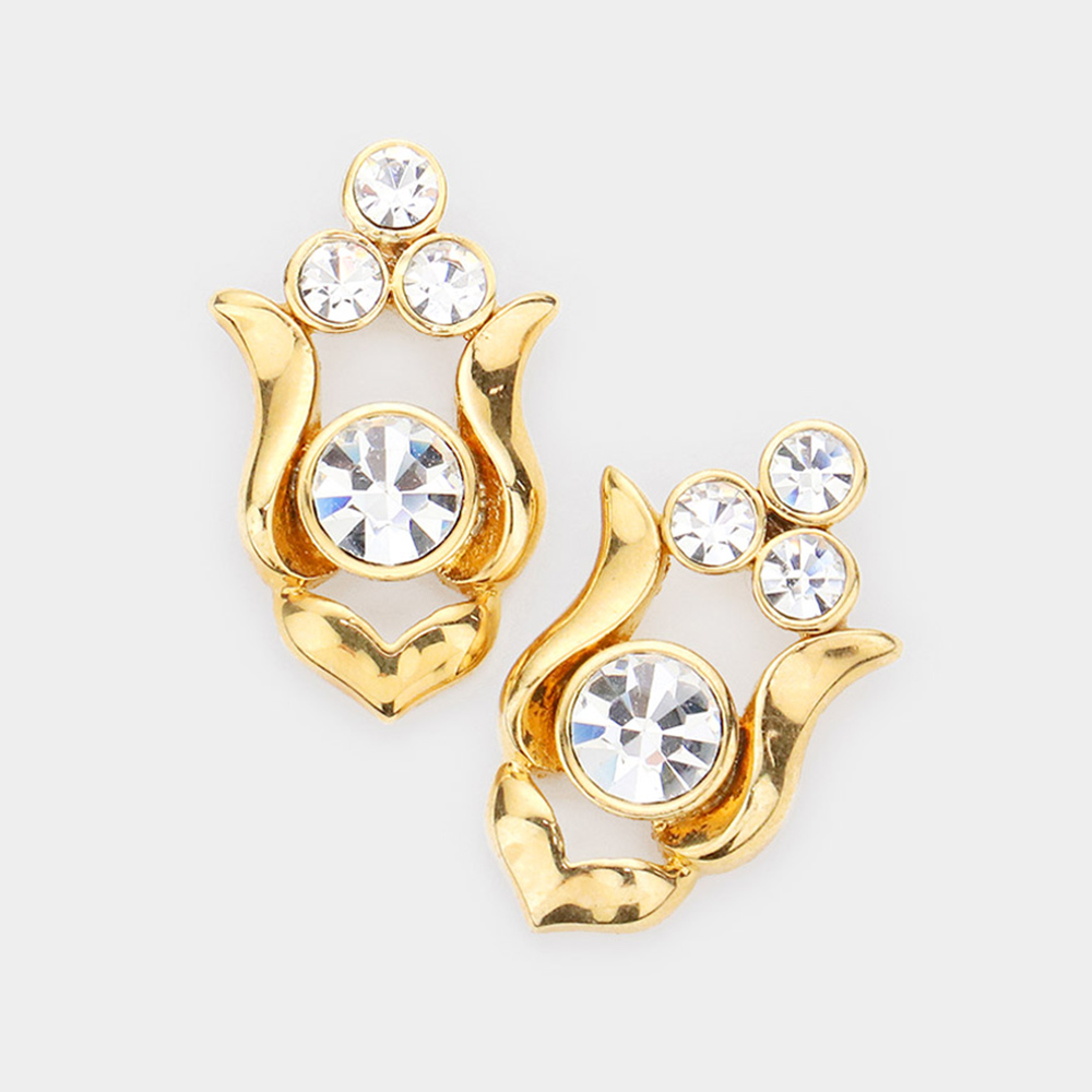 12Pairs - Heart Pearl Pointed Stone Paved Open Heart Dangle Earrings