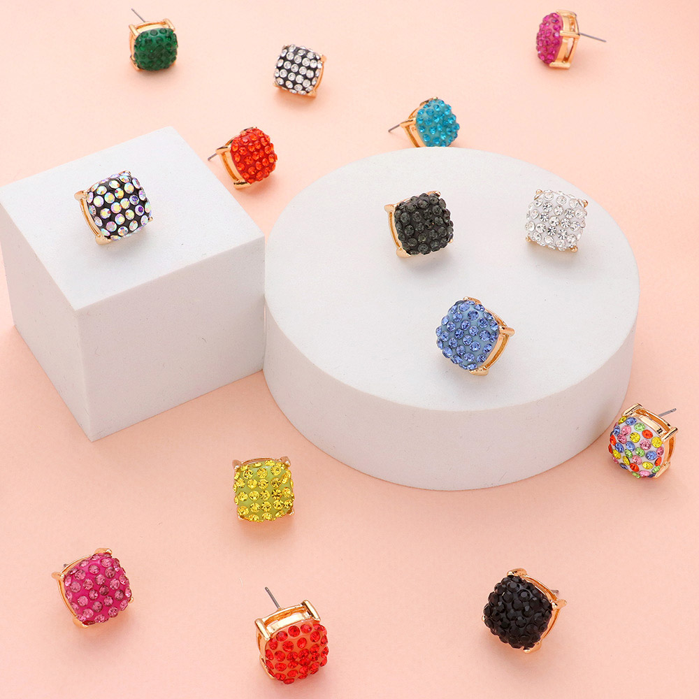 Details • Size : 0.5" X 0.5" • Post Back • Chic square crystal stud earrings featuring a cluster of dazzling stones in a classic prong setting. Perfect for adding a touch of sparkle to both casual and dressy looks, these timeless earrings offer lightweight comfort and radiant shine for everyday wear or special occasions. • Lead and Nickel Compliant