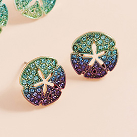 Stone Paved Colored Metal Palm Tree Stud Earrings