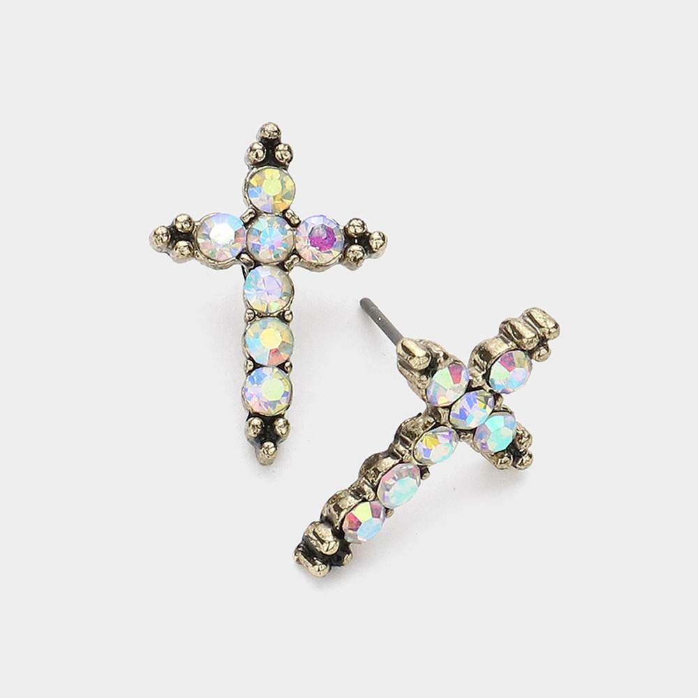 Stone Paved Cross Stud Earrings