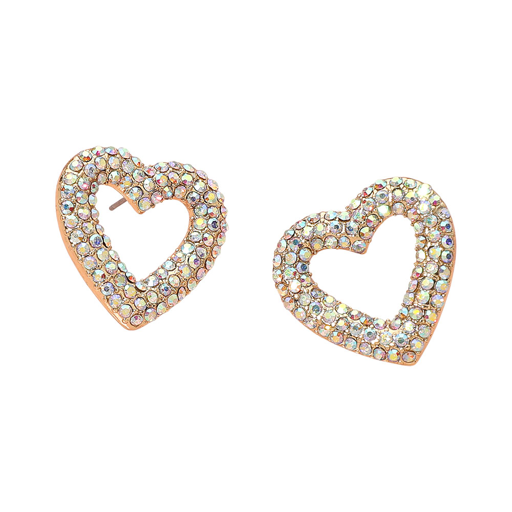 • Make a statement of love and style with these sparkling heart stud earrings. Adorned with shimmering stones in an open-heart design, they catch the light beautifully and add a touch of glamour to any look, from casual chic to special occasion elegance.