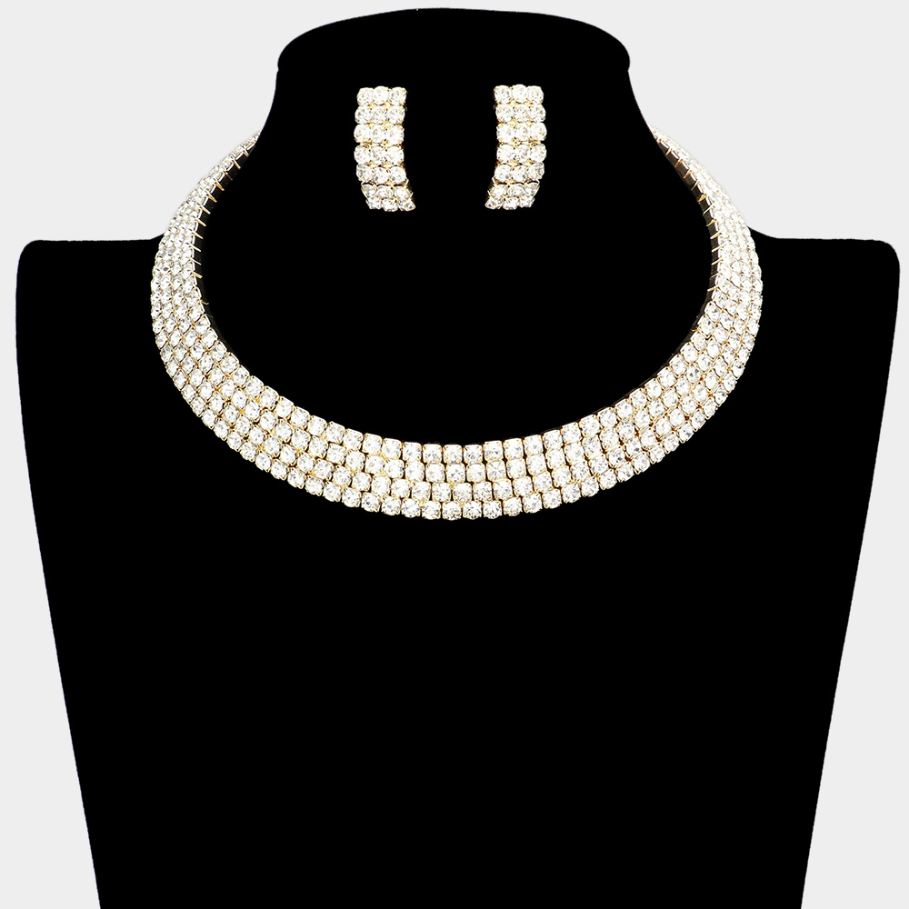 4-Row crystal Rhinestone Banded Open Choker Necklace