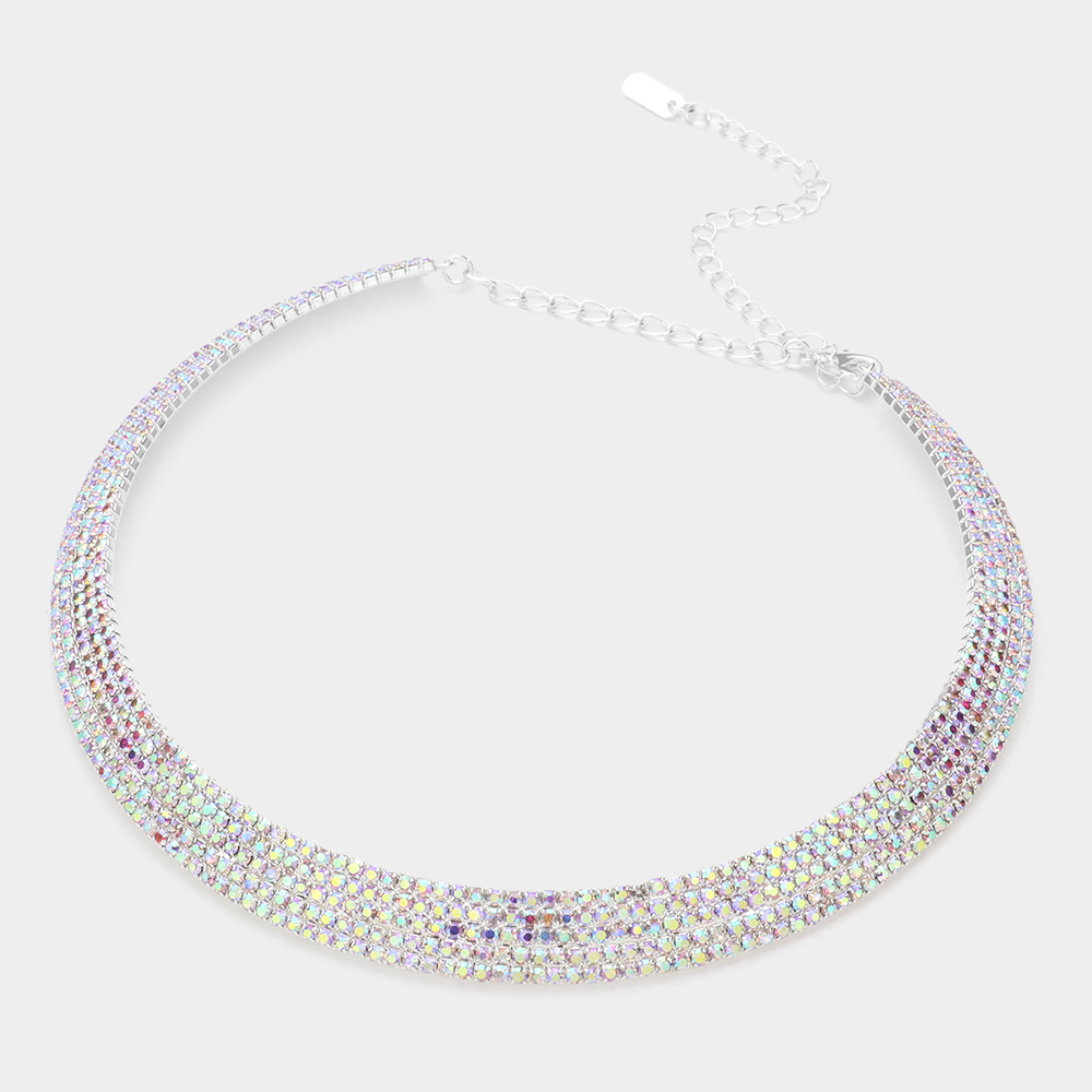 5Rows Rhinestone Pave Choker Necklace